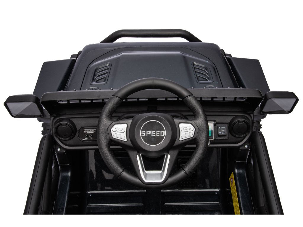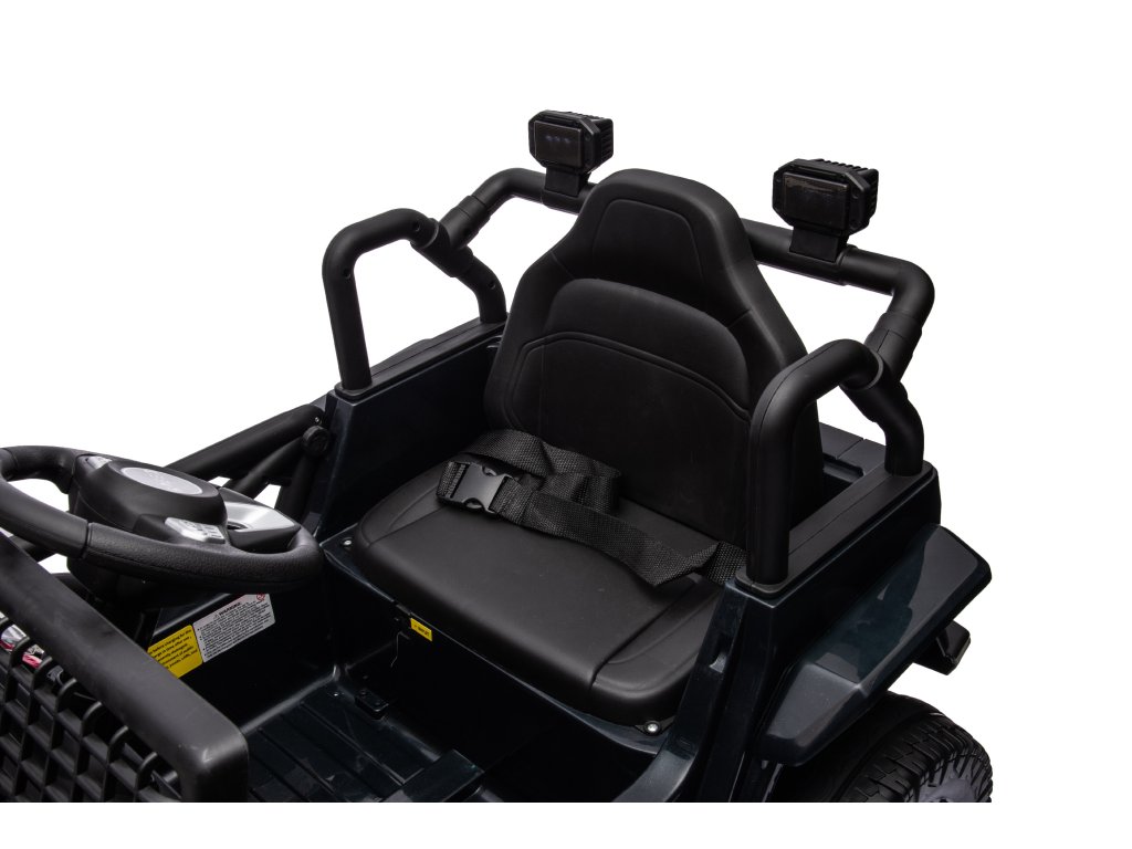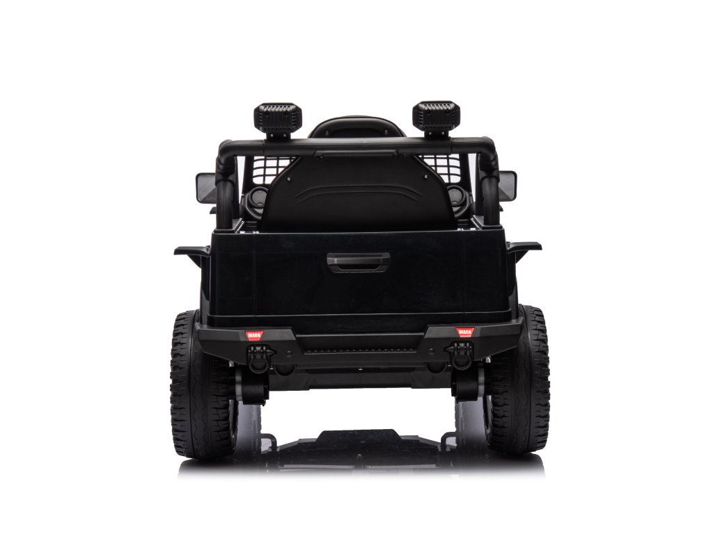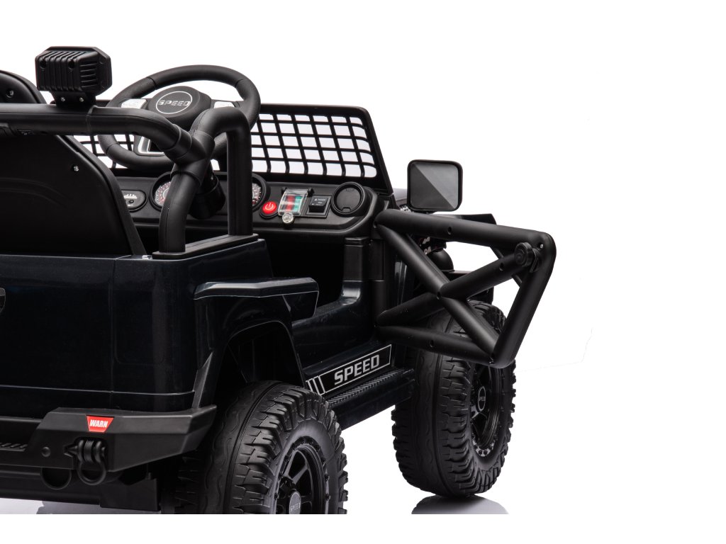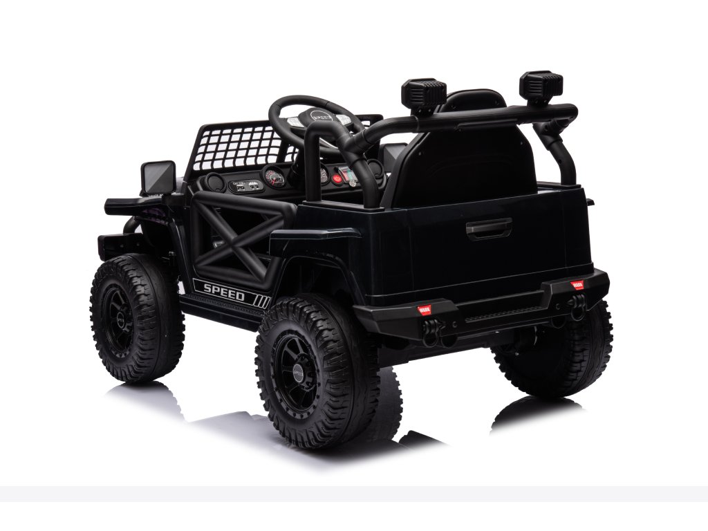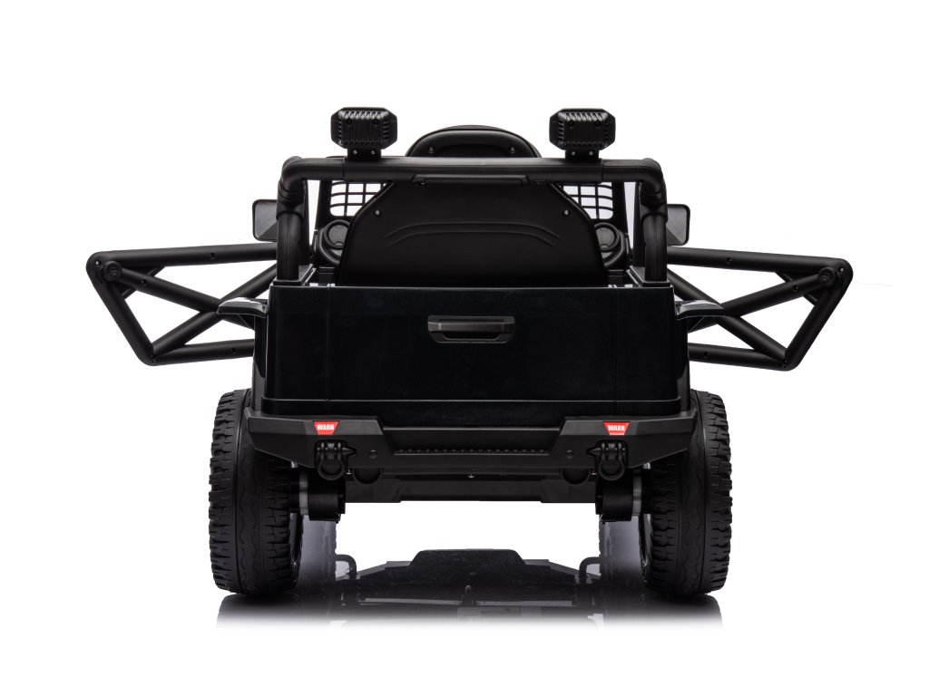 Акумулаторна кола OFFROAD черно 12V Висок шаси, широко седалка, окачени мостове, 2,4 GHz дистанционно управление LED светлини