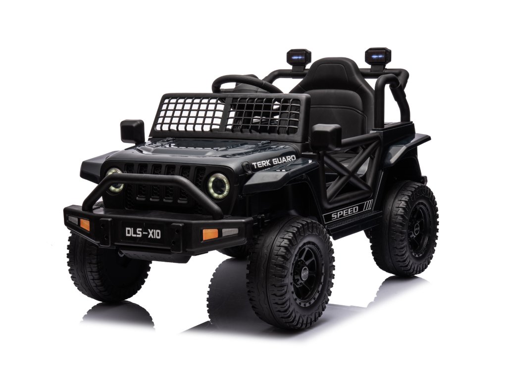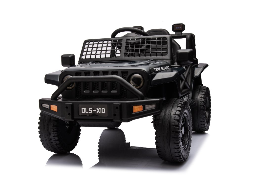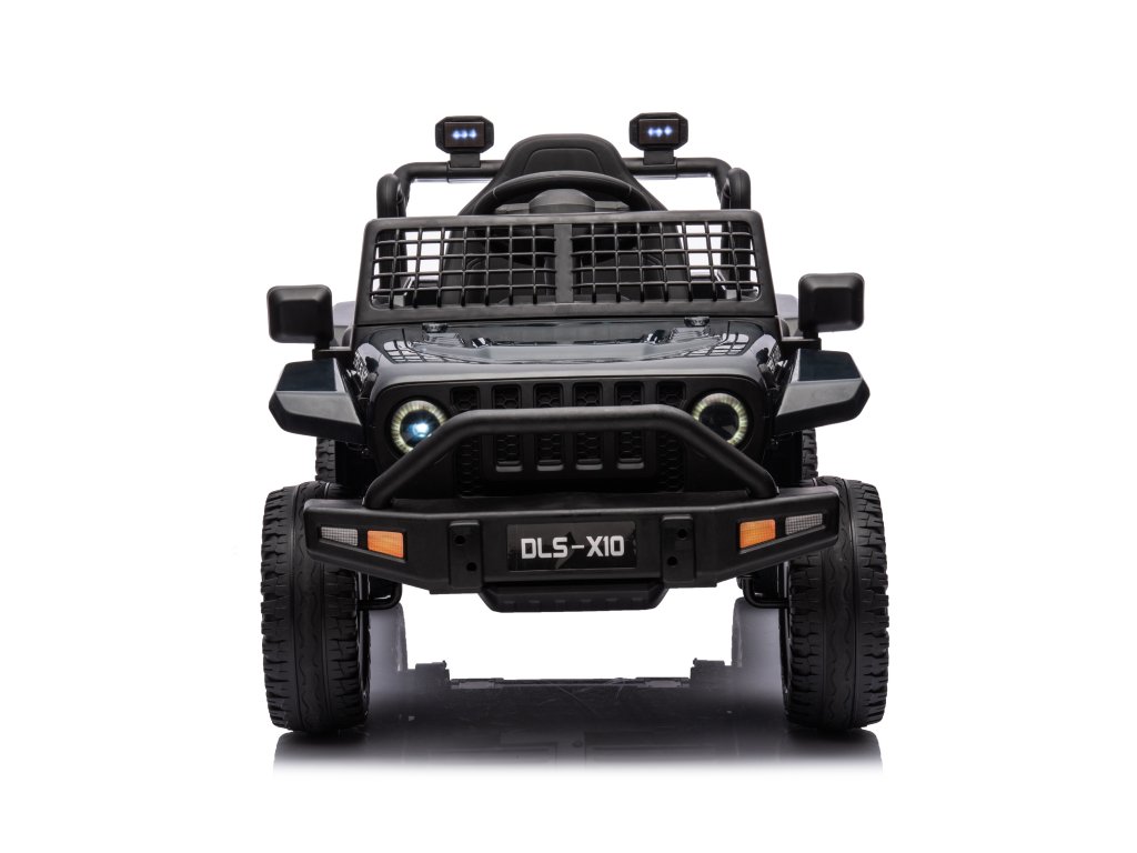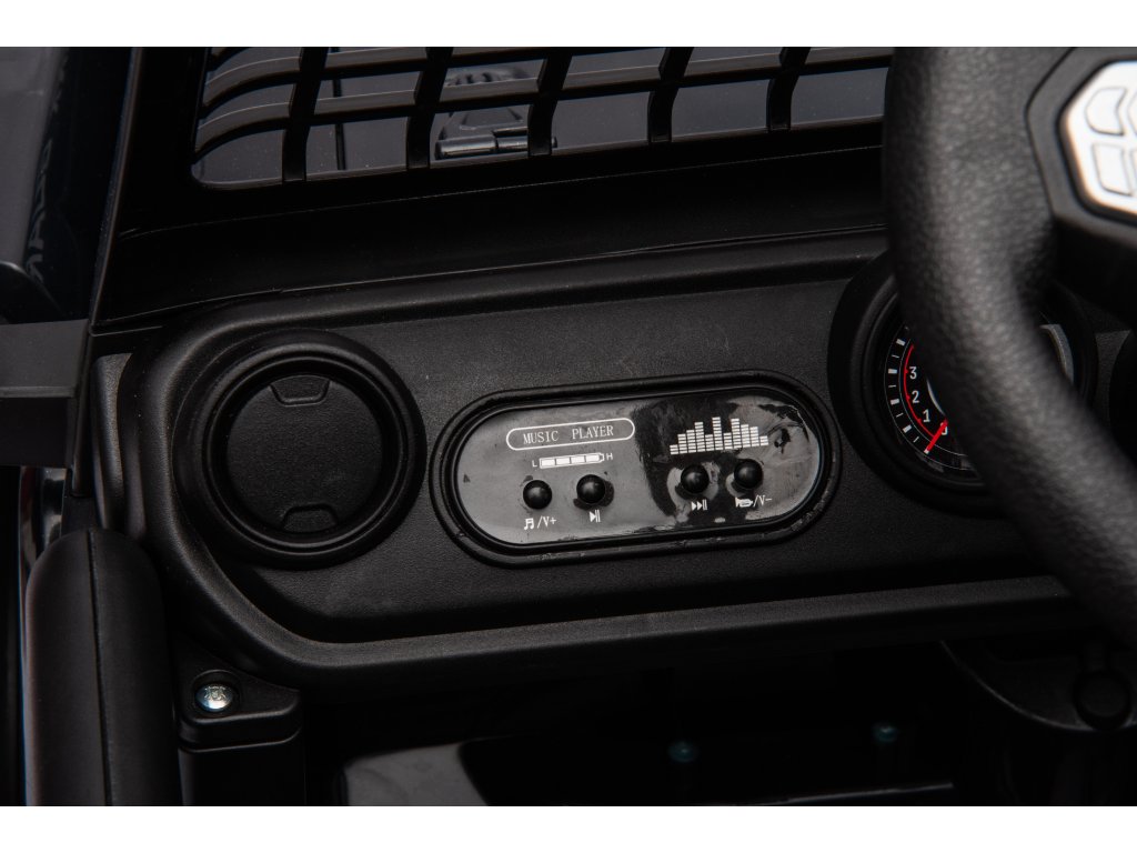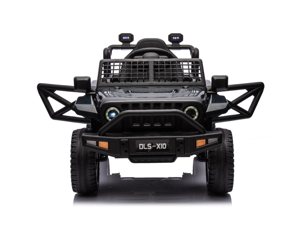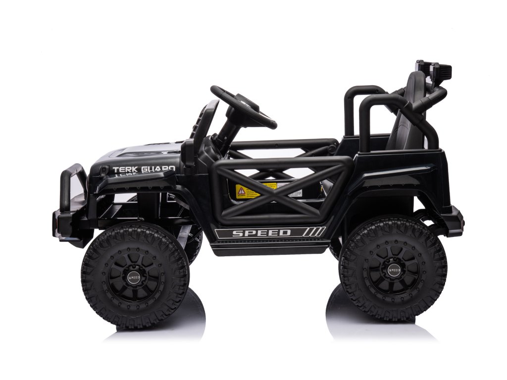 Акумулаторна кола OFFROAD черно 12V Висок шаси, широко седалка, окачени мостове, 2,4 GHz дистанционно управление LED светлини