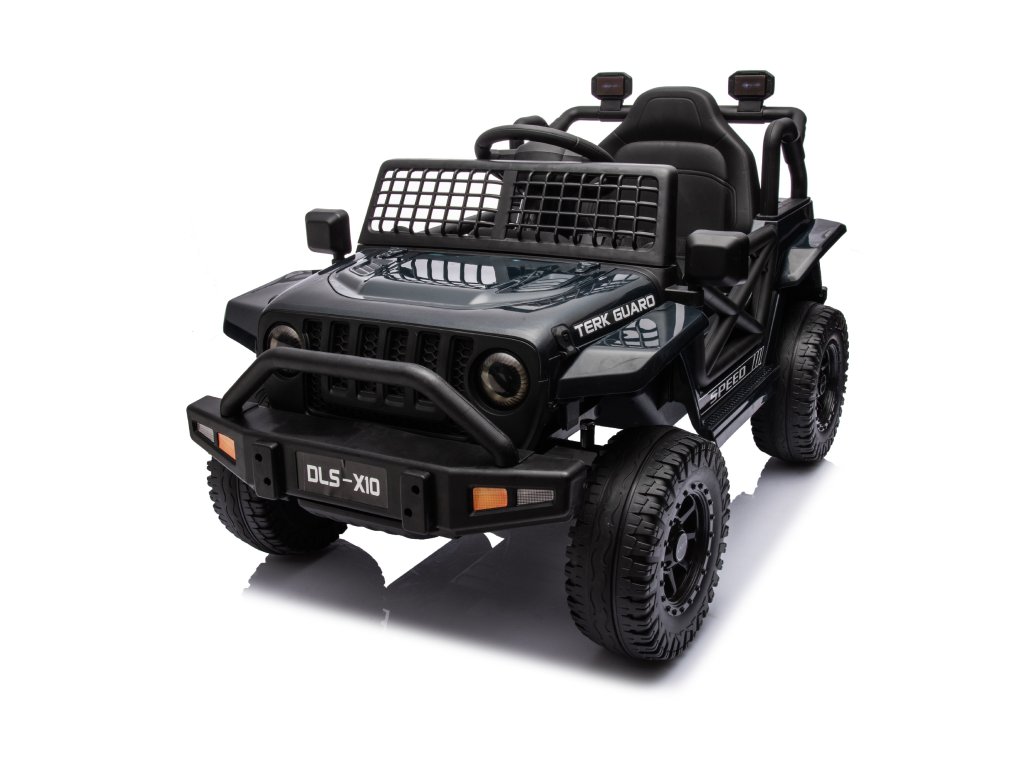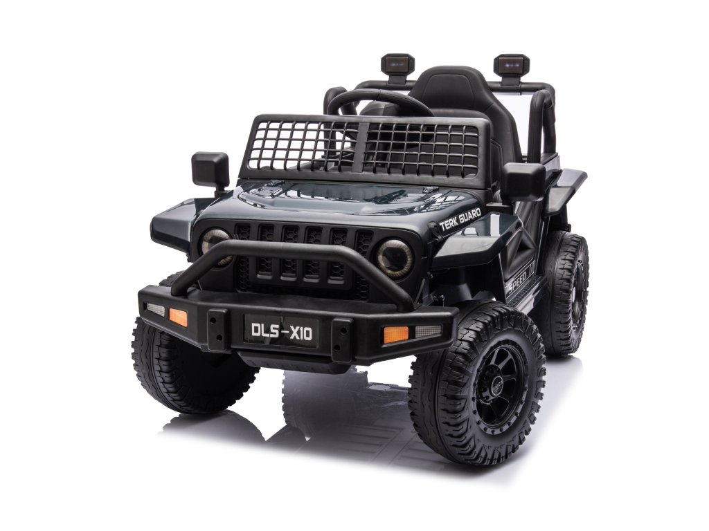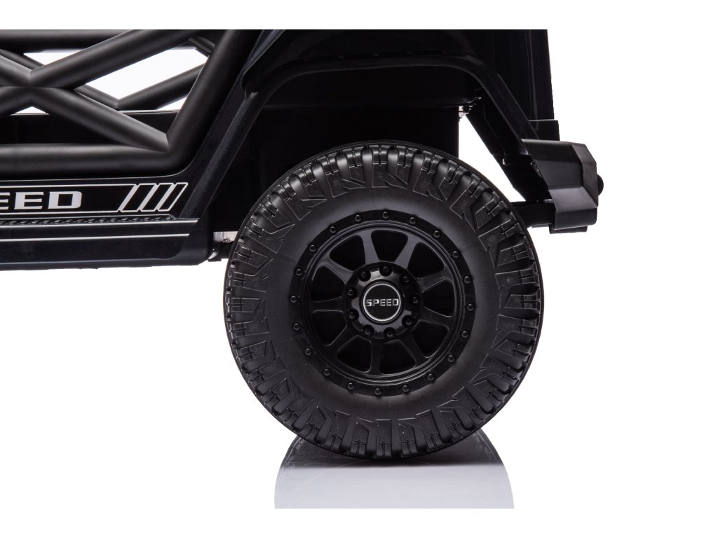 Детска акумулаторна кола OFFROAD черно 12V Висок шаси идва с големи колела, подходящи за различни типове терени. Детето сяда на удобно оформената широка седалка с предпазни колани. Максималното натоварване е до 30 кг.