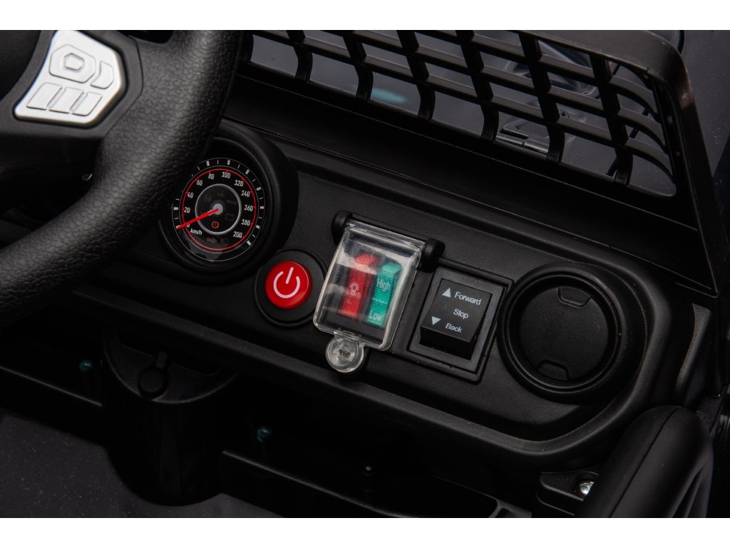 Кола се управлява много лесно – просто натиснете педала за газ и возилото плавно тръгва. Автоматичната спирачка се активира, когато кракът се вдигне от педала. Родителите могат да контролират колата чрез дистанционното управление, но детето може да я управлява напълно самостоятелно. В случай на опасност можете да натиснете бутон за безопасност STOP на дистанционното управление, който незабавно спира колата и изключва всички функции.