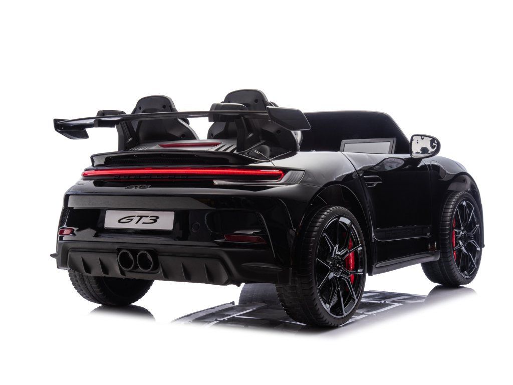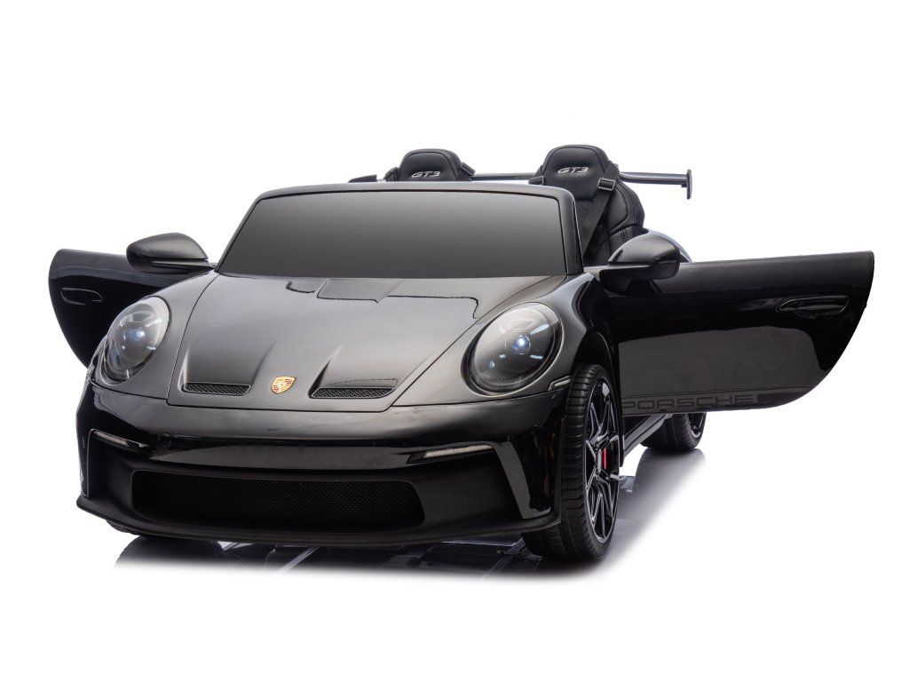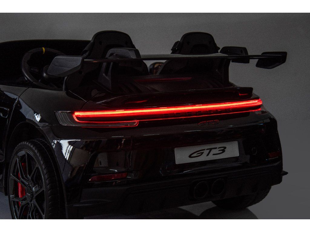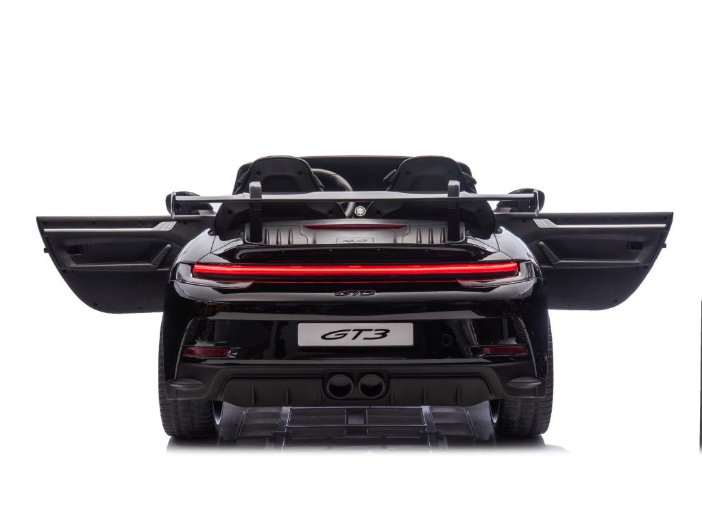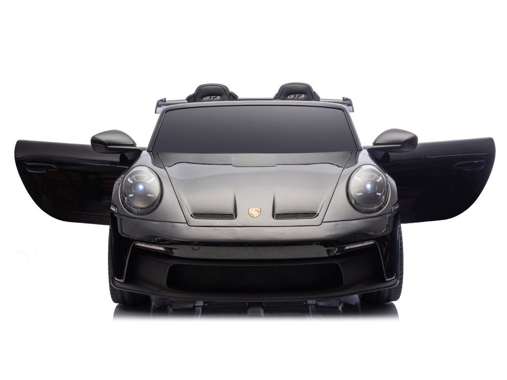 Представяме ви Акумулаторна кола Porsche 911 GT3 XXL + MP4 | 24V14Ah | 4x200W | За 2 деца | Лакирано черно – луксозно електрическо возило за деца, което съчетава стил, мощност и безопасност. Това акумулаторно количка е идеалният забавен аксесоар за вашите малки шофьори, предоставящ незабравими преживявания и часове игра.