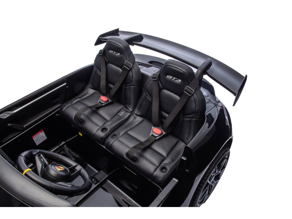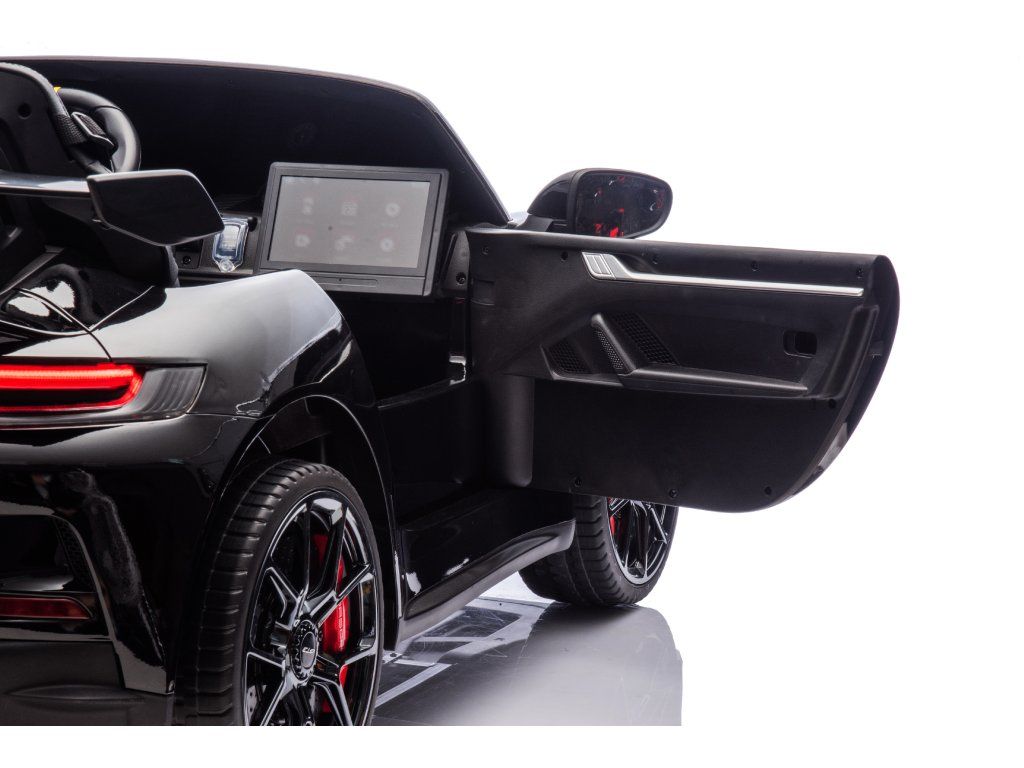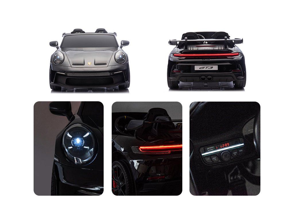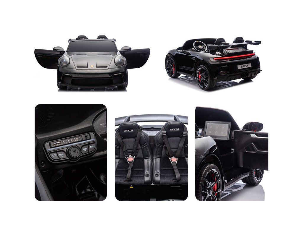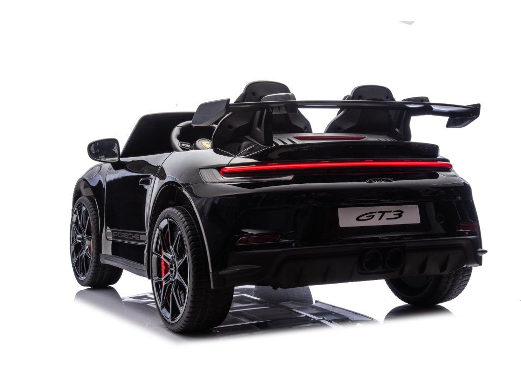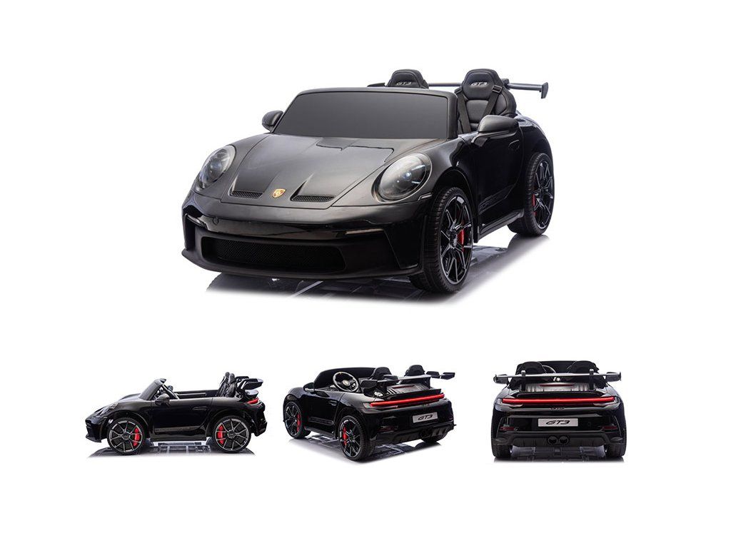 Представяме ви Акумулаторна кола Porsche 911 GT3 XXL + MP4 | 24V14Ah | 4x200W | За 2 деца | Лакирано черно – луксозно електрическо возило за деца, което съчетава стил, мощност и безопасност. Това акумулаторно количка е идеалният забавен аксесоар за вашите малки шофьори, предоставящ незабравими преживявания и часове игра.
