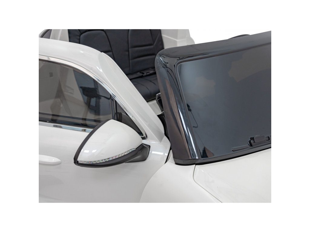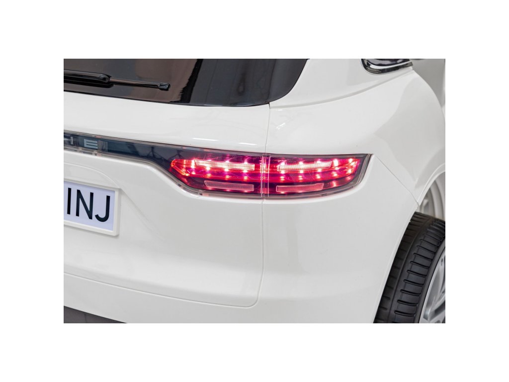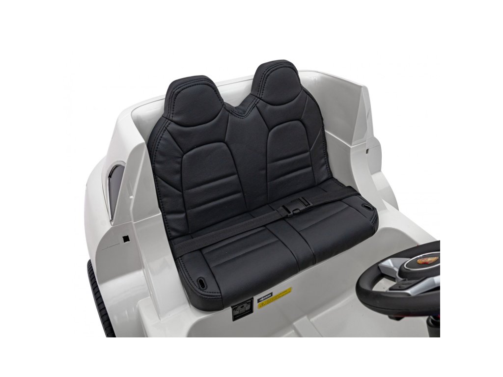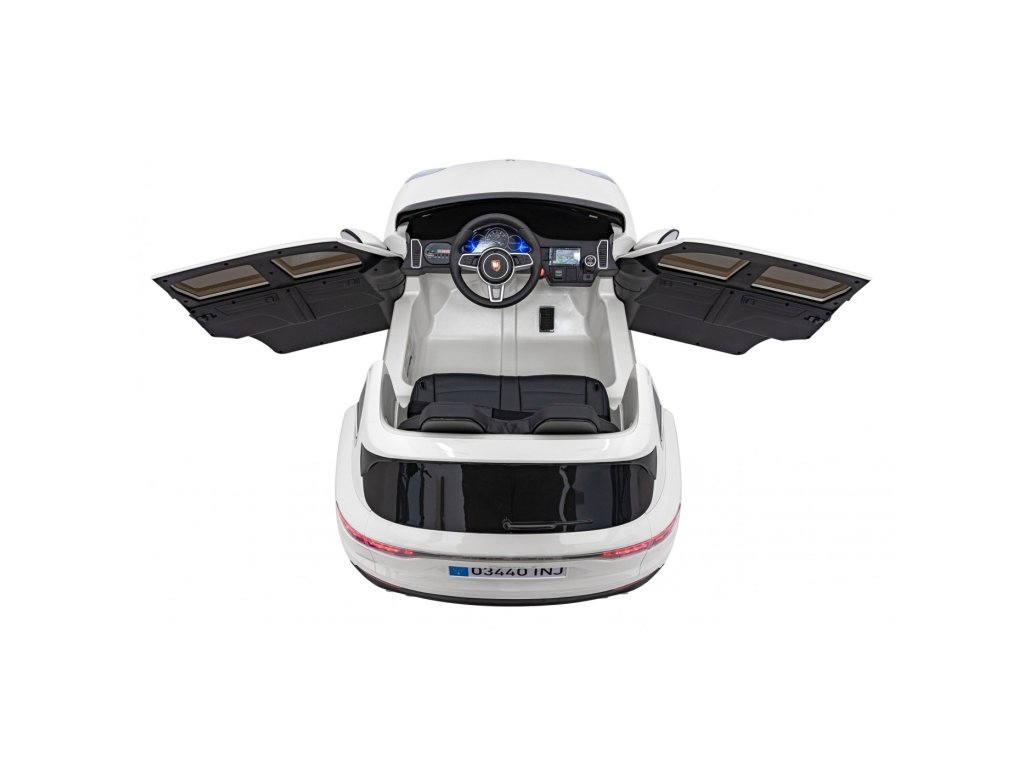 Акумулаторната кола Porsche Cayenne S бяла разполага с два двигателя с обща мощност 70W и батерия с капацитет 12V 7Ah. За комфортно каране се грижат пенометални EVA гуми и седалка, облицована с еко кожа. На детето със сигурност ще му хареса музикалният панел с MP3, USB, AUX вход и слот за SD карта. Товароносимостта на колата е 30 кг. Колата е оборудвана с предно и задно LED осветление и врати, които се отварят.