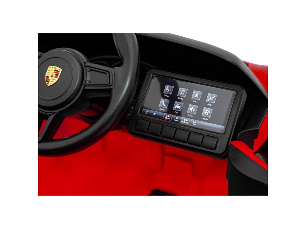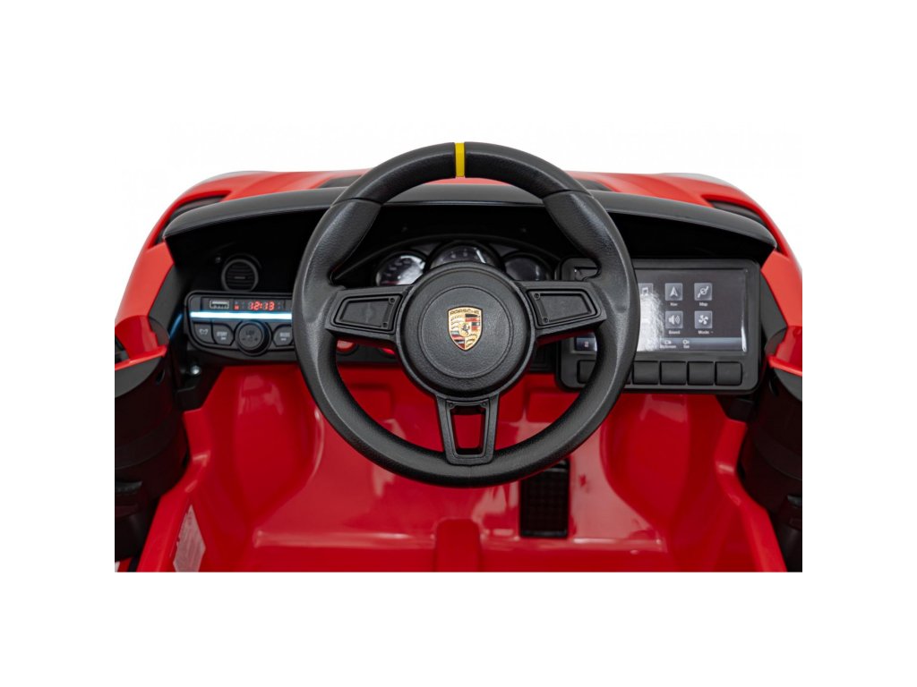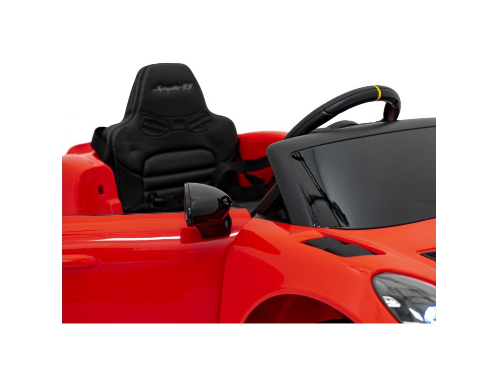 Акумулаторна кола Porsche Spyder RS 718 червена разполага с два мотора с обща мощност от 90W и батерия с капацитет 12V 7Ah. За комфортното шофиране се грижат пянни EVA гуми и седалка, тапицирана с екологична кожа. На детето със сигурност ще допадне музикалният панел с MP3, USB, AUX, Bluetooth и радио. Товароносимостта на колата е 30 кг. Колата има както предно, така и задно LED осветление и отвори за врати.