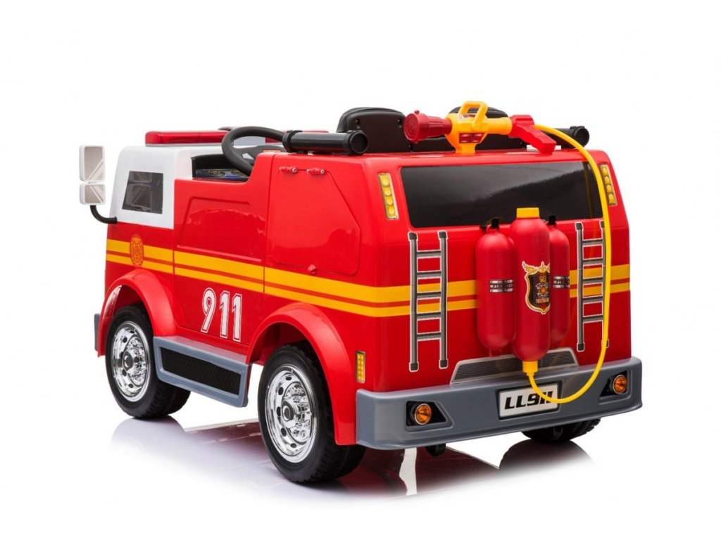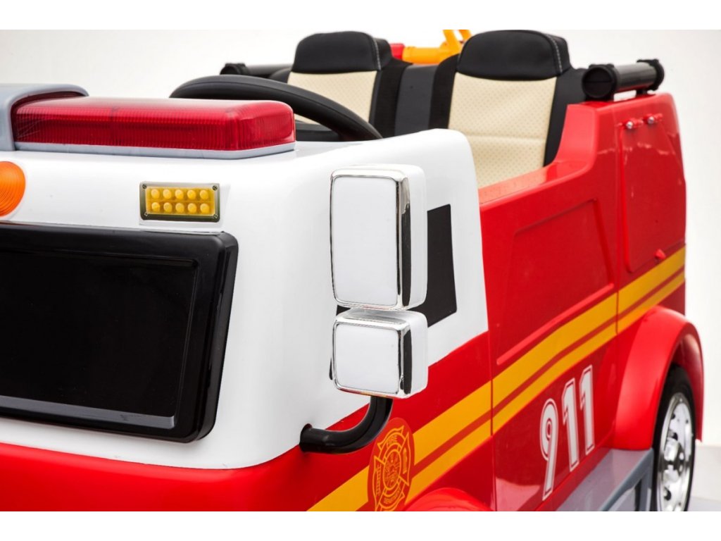 Детска акумулаторна кола в стил на класическа пожарна кола ще зарадва всички малки почитатели на тази професия. Освен красивия дизайн, Акумулаторна кола пожарна 911 предлага множество функции и богато оборудване. Пяна гуми EVA са безшумни и се справят с различни видове терени. Друг важен елемент са амортисьорите. Колата разполага с LED осветление и е оборудвана със звуков панел. Седалката е пластмасова с предпазни колани. За безопасността на вашето дете можете да се грижите и вие чрез дистанционно управление. С тази акумулаторна кола забавлението е гарантирано не само за детето, но и за цялото семейство. Подходяща за деца над 3 години.