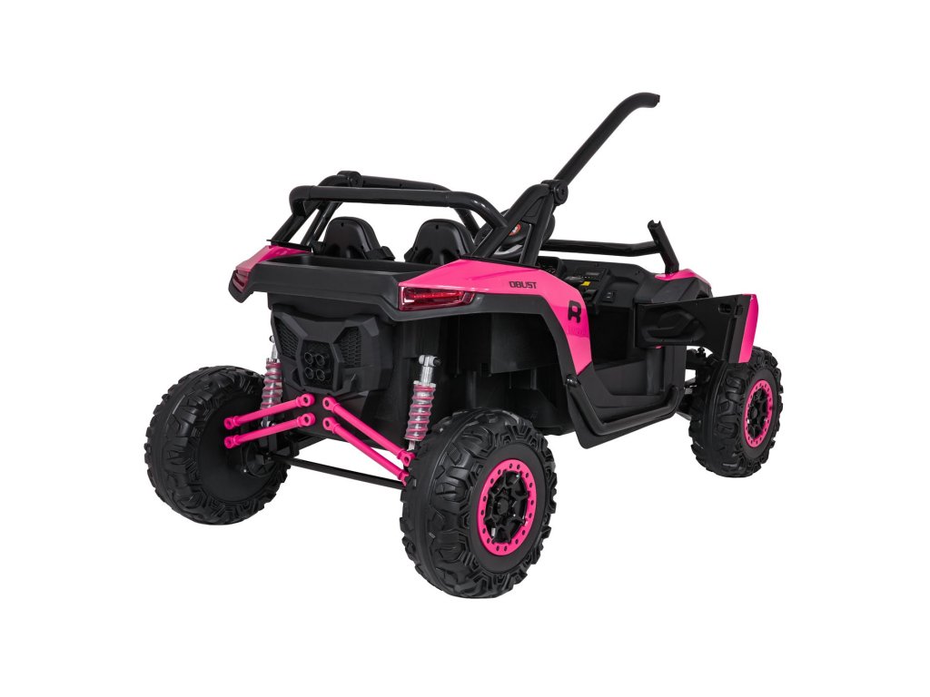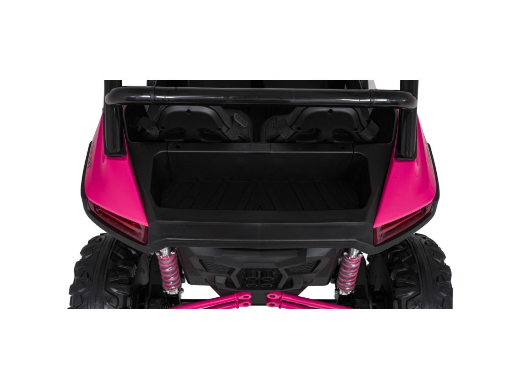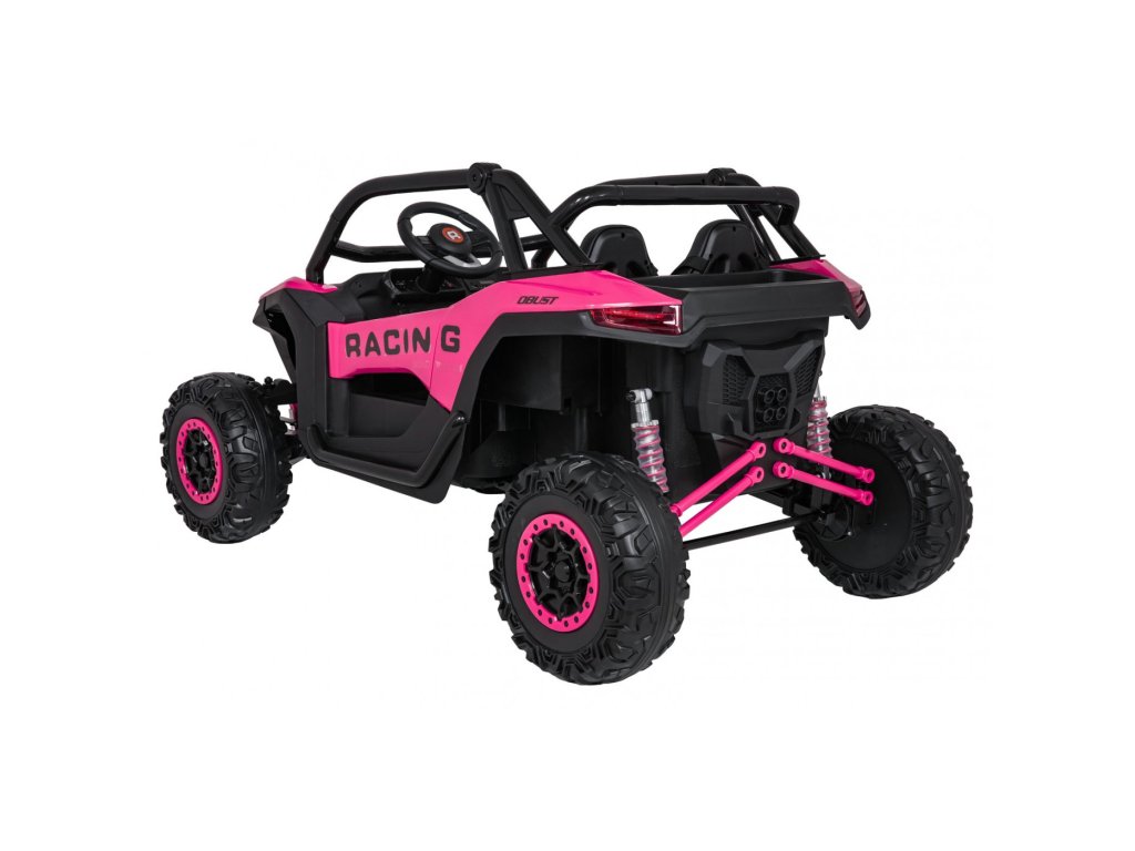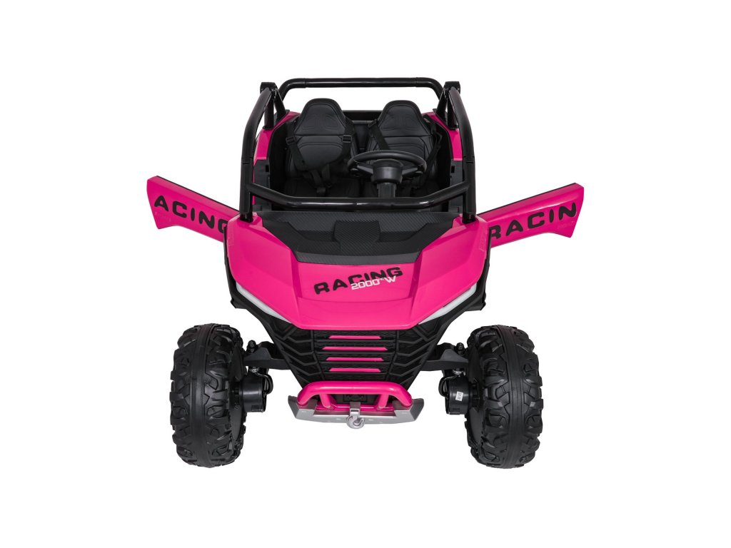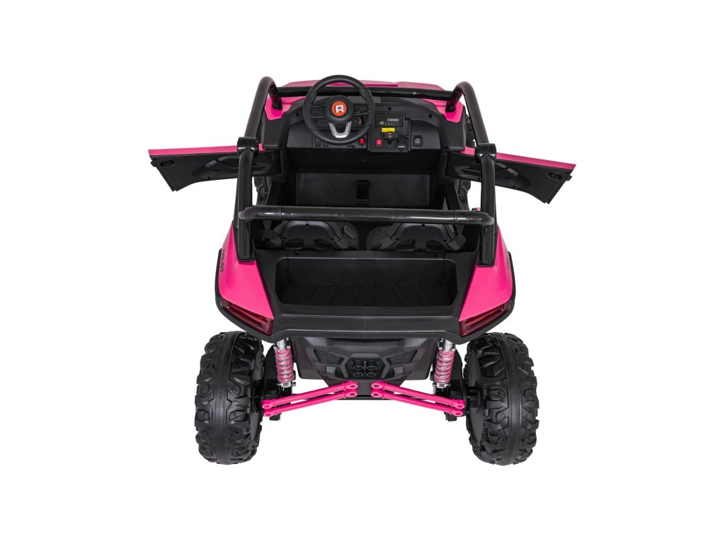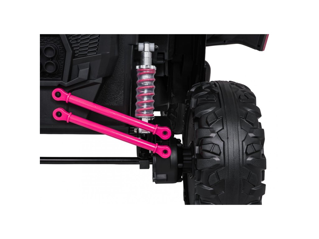 Акумулаторна кола RACING Road 2000 4x120W 24V розово е здрава и многофункционална електрическа кола за две деца, които искат да изживеят истинско приключение. С мощност от четири двигателя (4 × 120W) и мощна 24V 7Ah батерия, автомобилът се справя отлично както с равни повърхности, така и с леко неравен терен. Меки EVA пенирани гуми и задно окачване с възможност за регулиране осигуряват гладко каране без излишни удари, а функцията за плавен старт (soft start) допринася за безопасността и удобството.