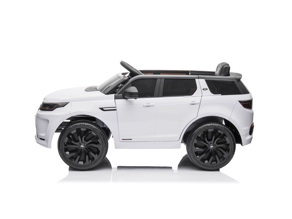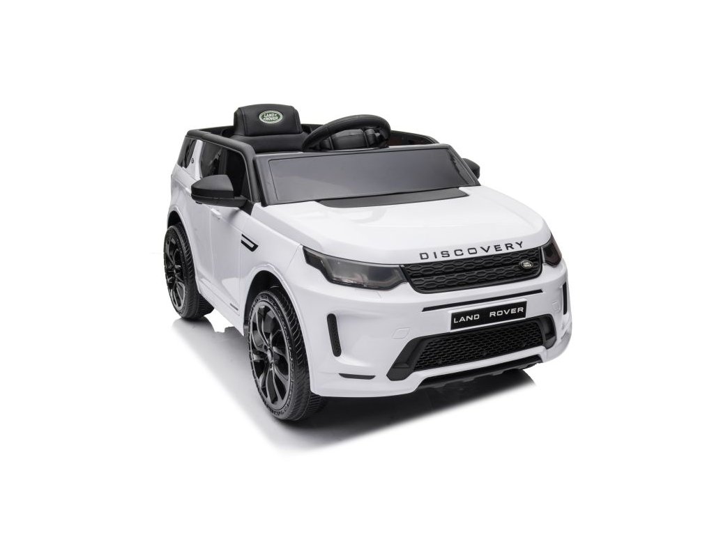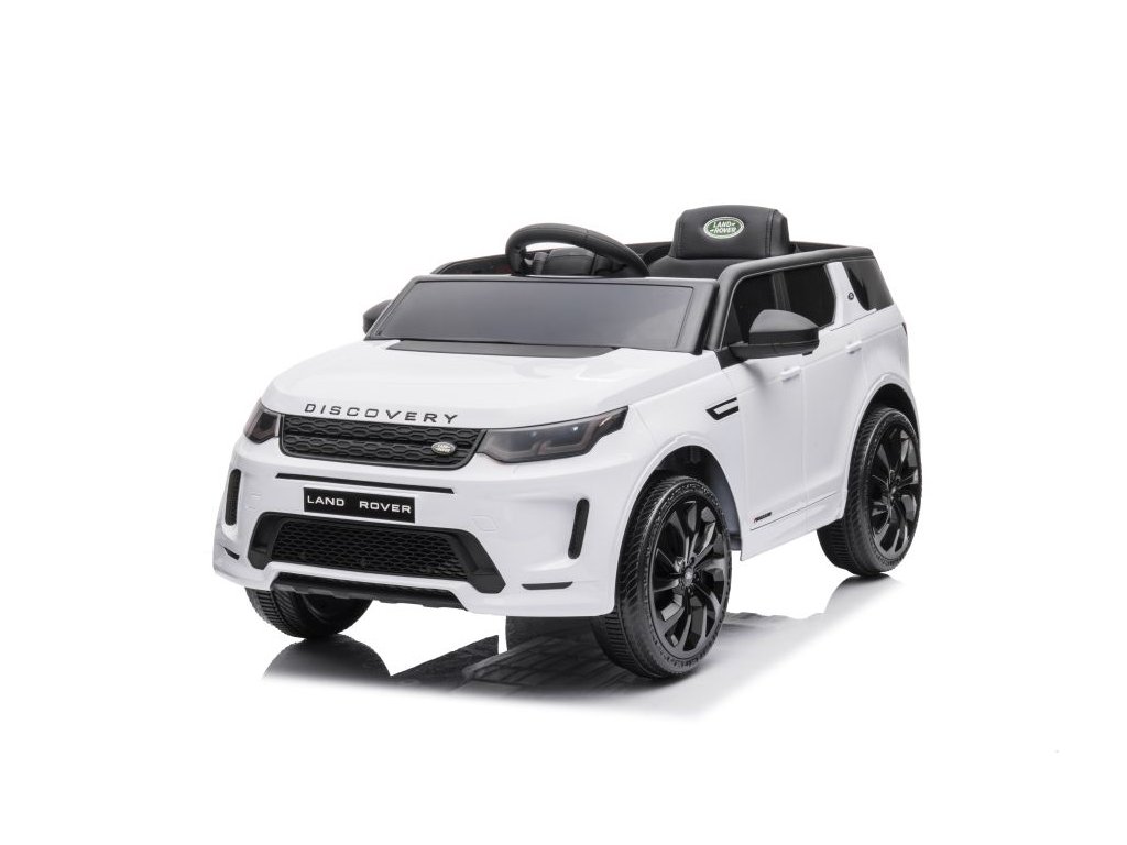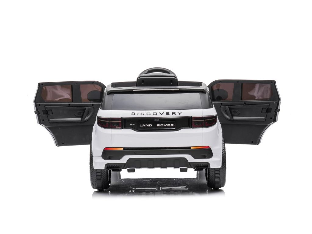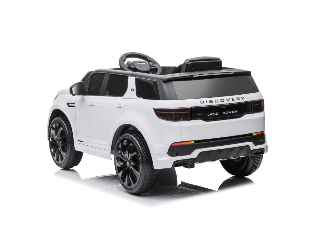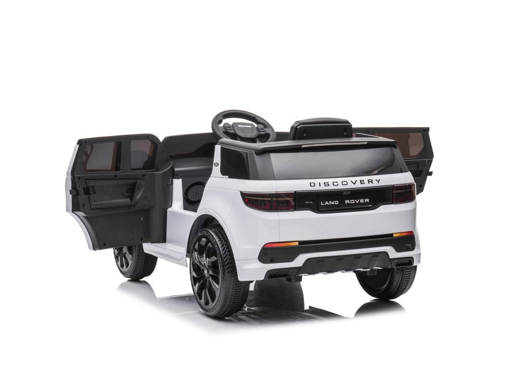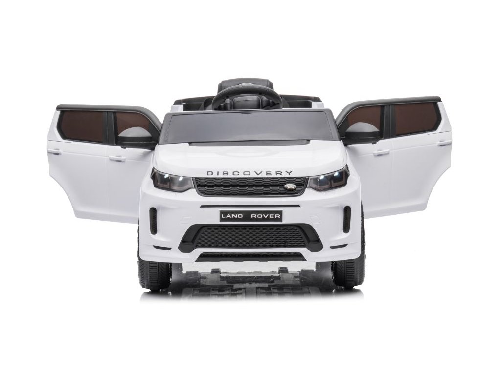 Акумулаторна кола Range Rover Discovery бяла е лицензиран модел на марката Range Rover. Колата е оборудвана с два мотора с мощност от 45W и акумулатор с капацитет 12V 7Ah. За комфортно каране допринасят пянните EVA гуми и седалката от еко кожа. Детето ще се наслаждава на музикалния панел с вход за USB и MP3. Колата разполага с предно и задно LED осветление, отвори врати и предпазни колани. Максималното натоварване е 25 кг.