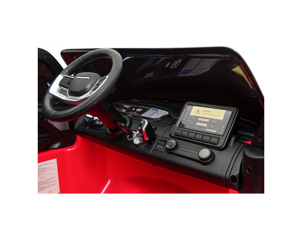 Акумулаторна кола Range Rover SUV Lift червено разполага с мощна батерия с капацитет 12V 14Ah и четири мотора с мощност 35W, което осигурява 4x4 задвижване. Предимство на колата е променливото задвижване, което позволява превключване между 2x2 и 4x4. За комфортно возене се грижат пянни EVA гуми и седалка от екокожа. Детето ще се забавлява допълнително с музикалния панел, включващ входове за MP3, USB и Bluetooth. Максималното натоварване на колата е 35 кг. Колата е оборудвана с предно и задно LED осветление и отварящи се врати с възможност за заключване.