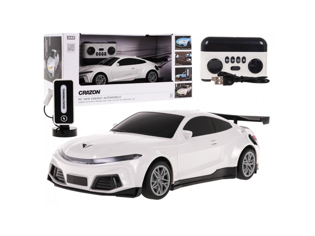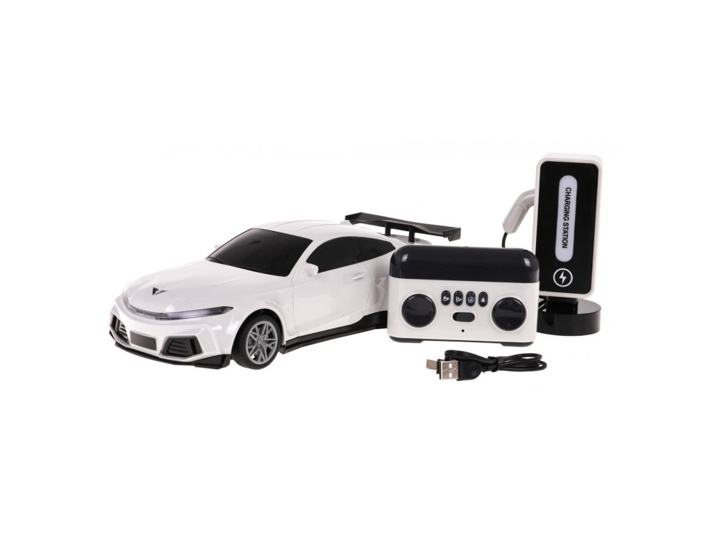 Акумулаторна кола с дистанционно управление R/C с зарядна станция бяла