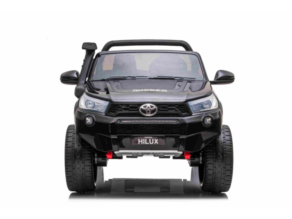 Детска електрическа кола с лиценз на марката Toyota, модел Акумулаторна кола Toyota Hilux 4x4 черна, разполага с четири мощни електрически мотора и меки Eva гуми, които осигуряват отлично сцепление на различни терени.