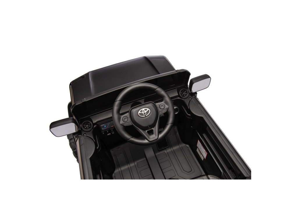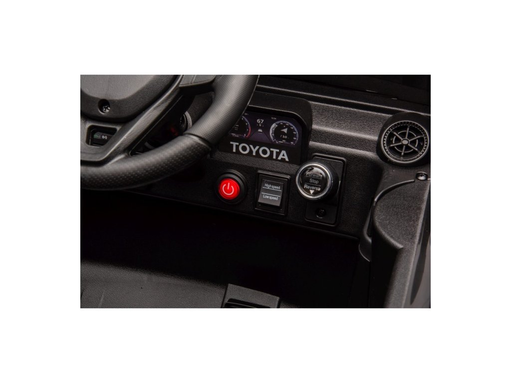 Детска акумулаторна кола Toyota Land Cruiser PRADO черна се движи на пяна EVA гуми, които не създават шум по време на каране. Колата е оборудвана с удобна седалка от еко кожа с 3-точкови предпазни колани.