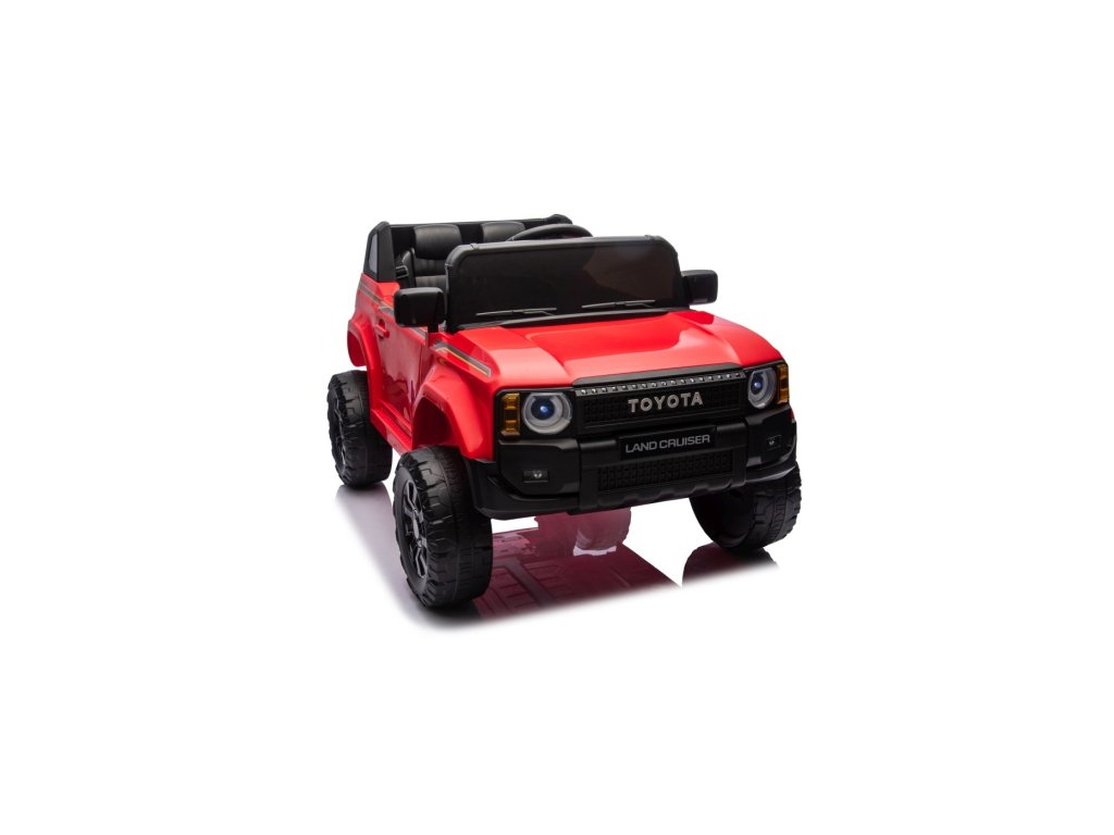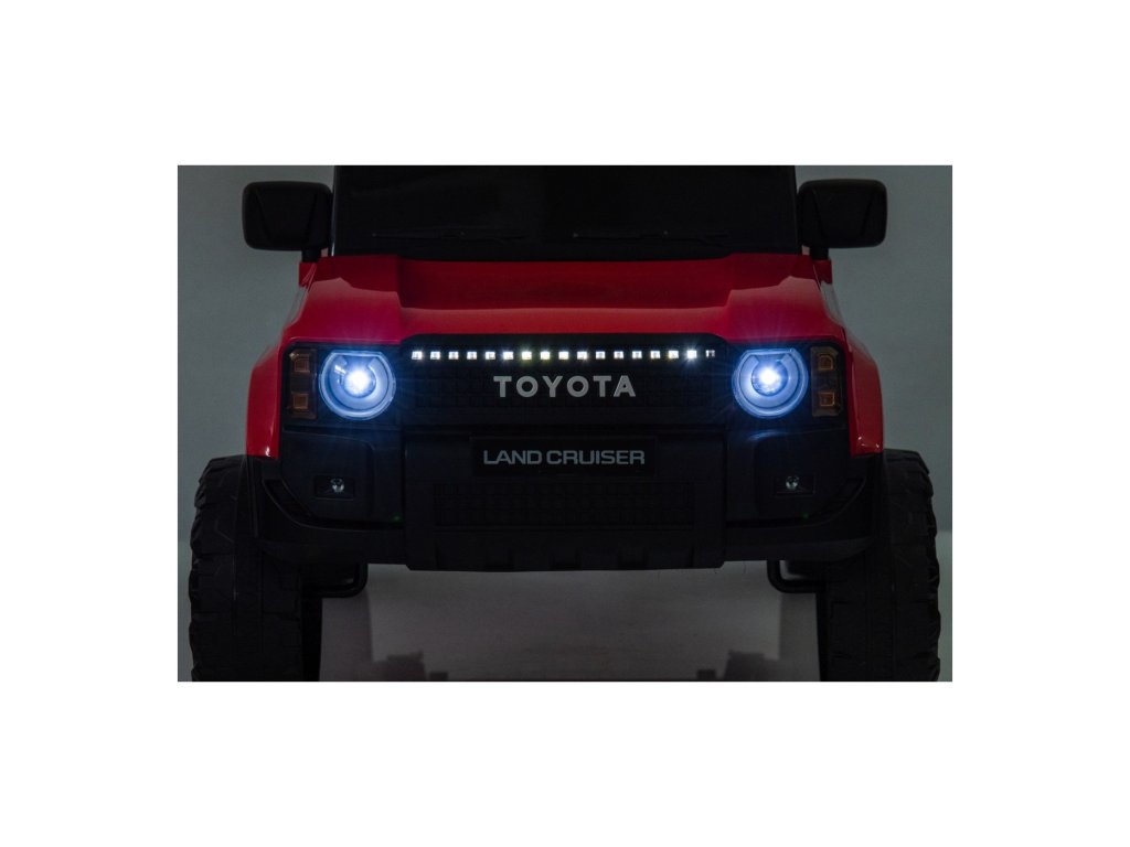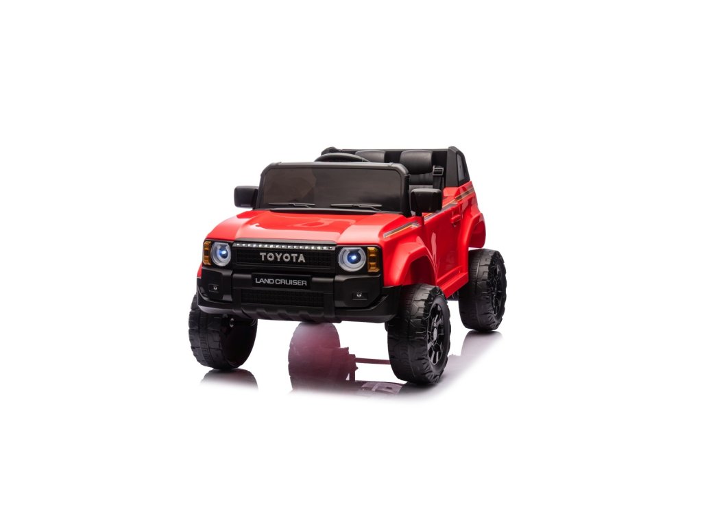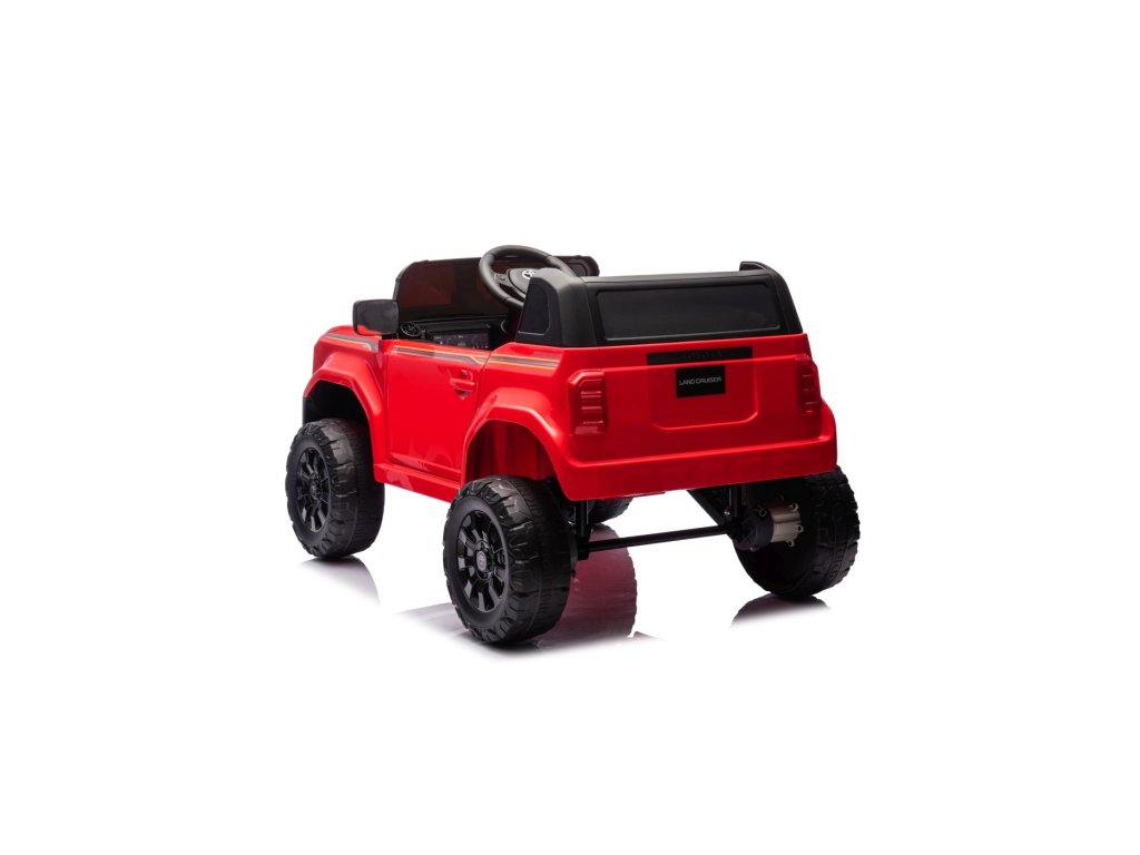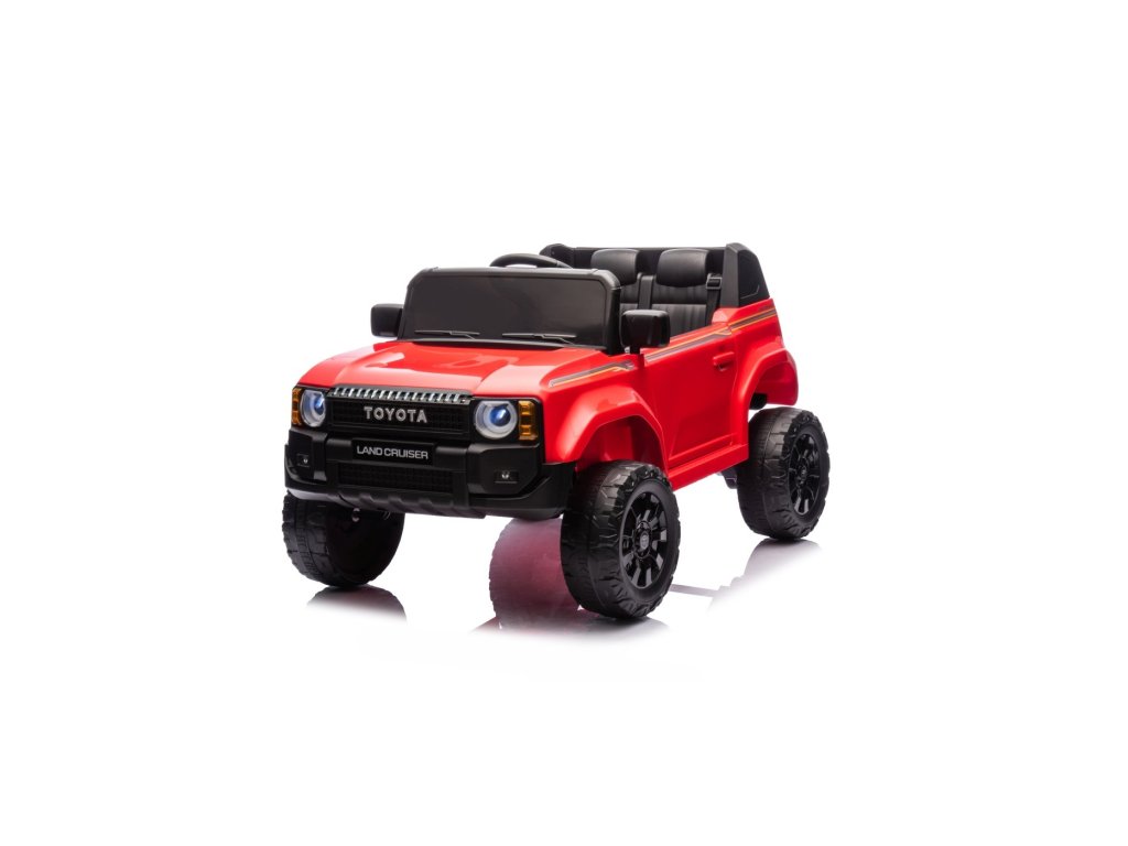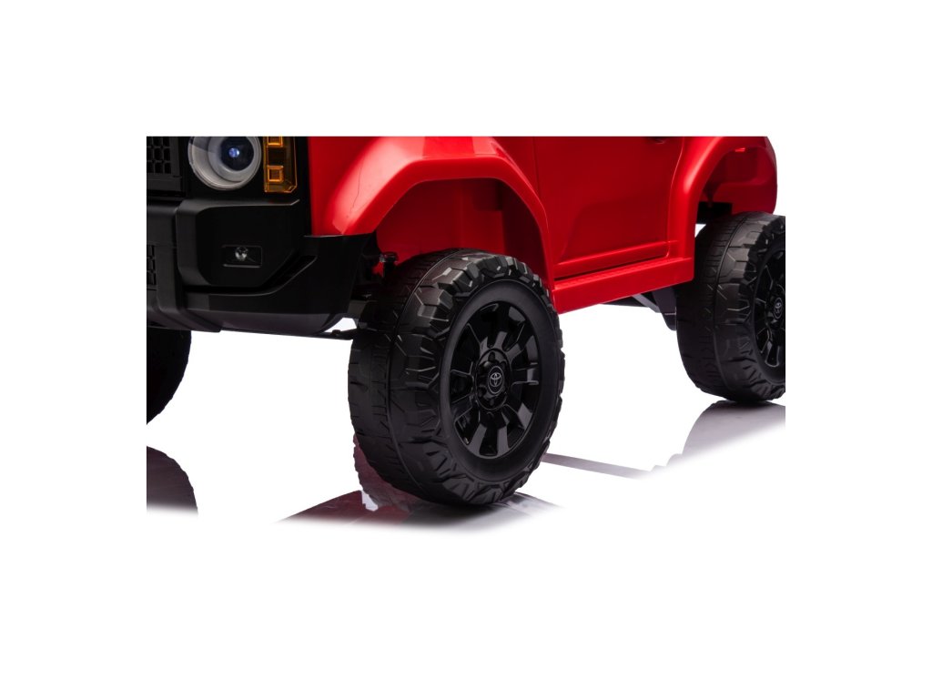 Акумулаторна кола Toyota Land Cruiser PRADO червена се движи на пянини EVA колела, които гарантират безшумно возене. Количката е оборудвана с удобна седалка от еко кожа с 3-точкови обезопасителни колани.