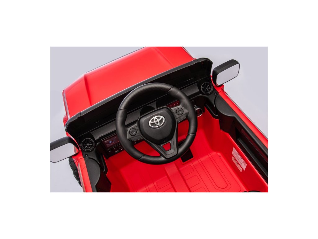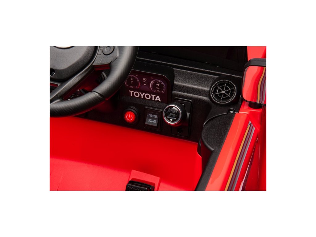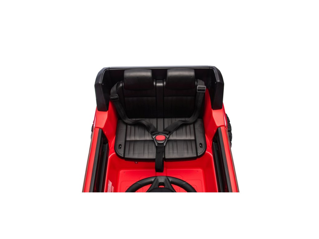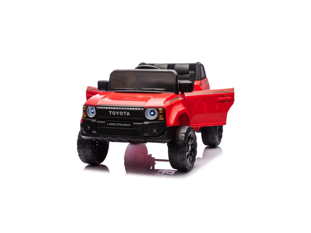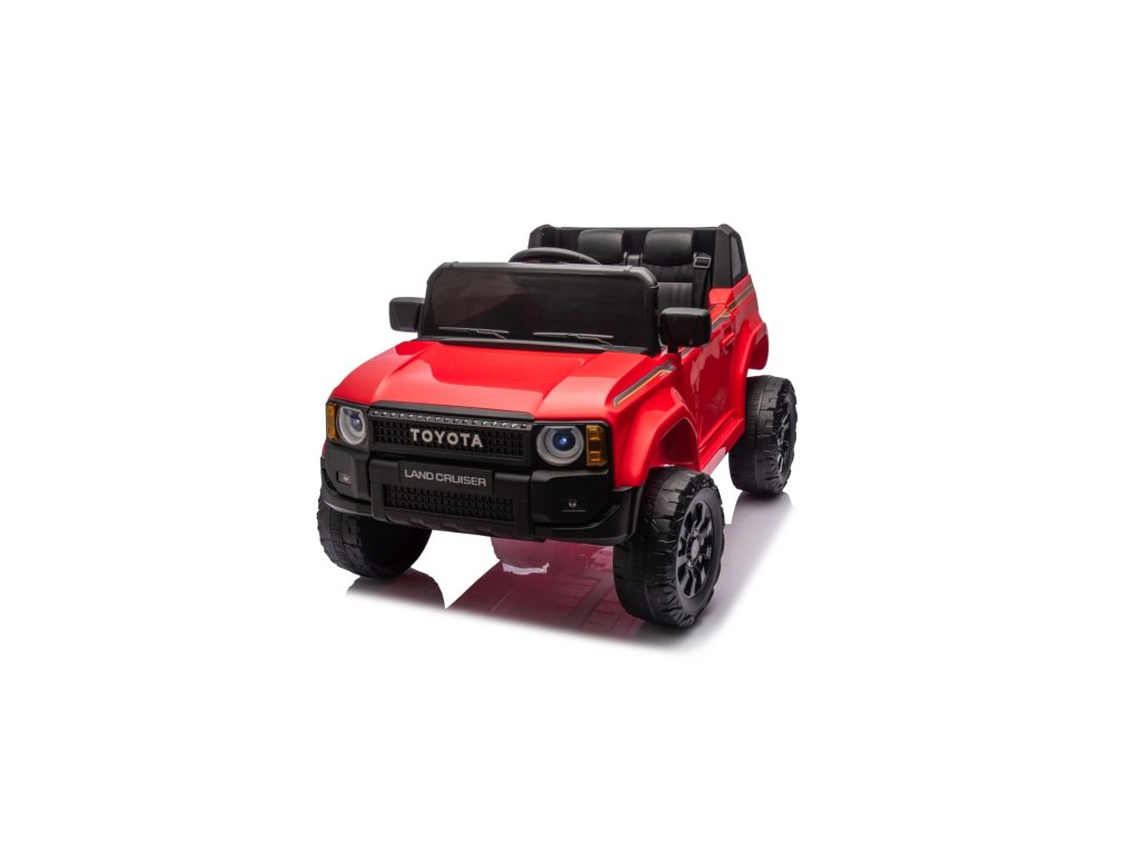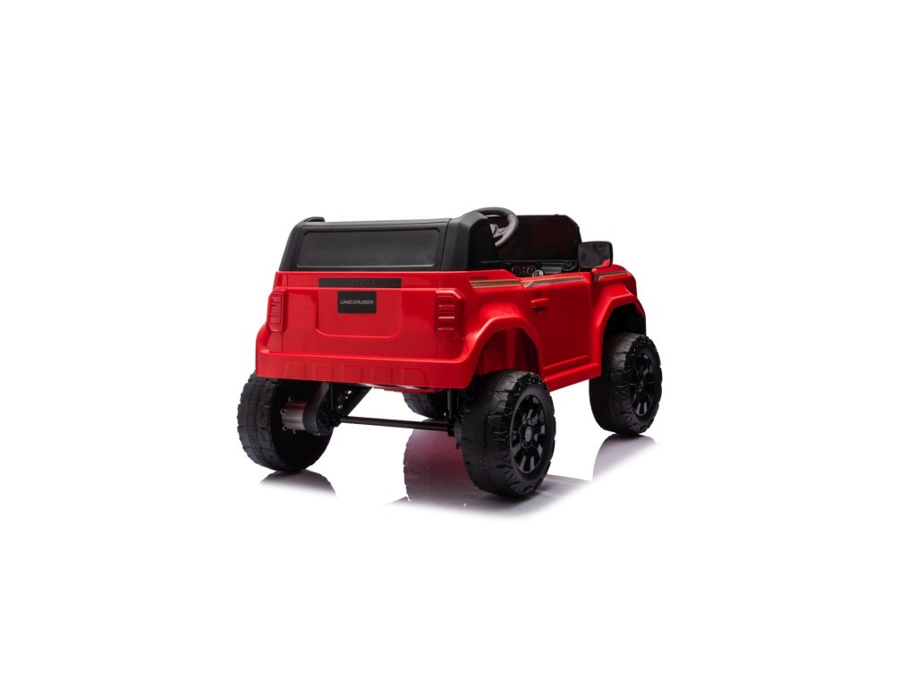 Акумулаторна кола Toyota Land Cruiser PRADO червена се движи на пянини EVA колела, които гарантират безшумно возене. Количката е оборудвана с удобна седалка от еко кожа с 3-точкови обезопасителни колани.