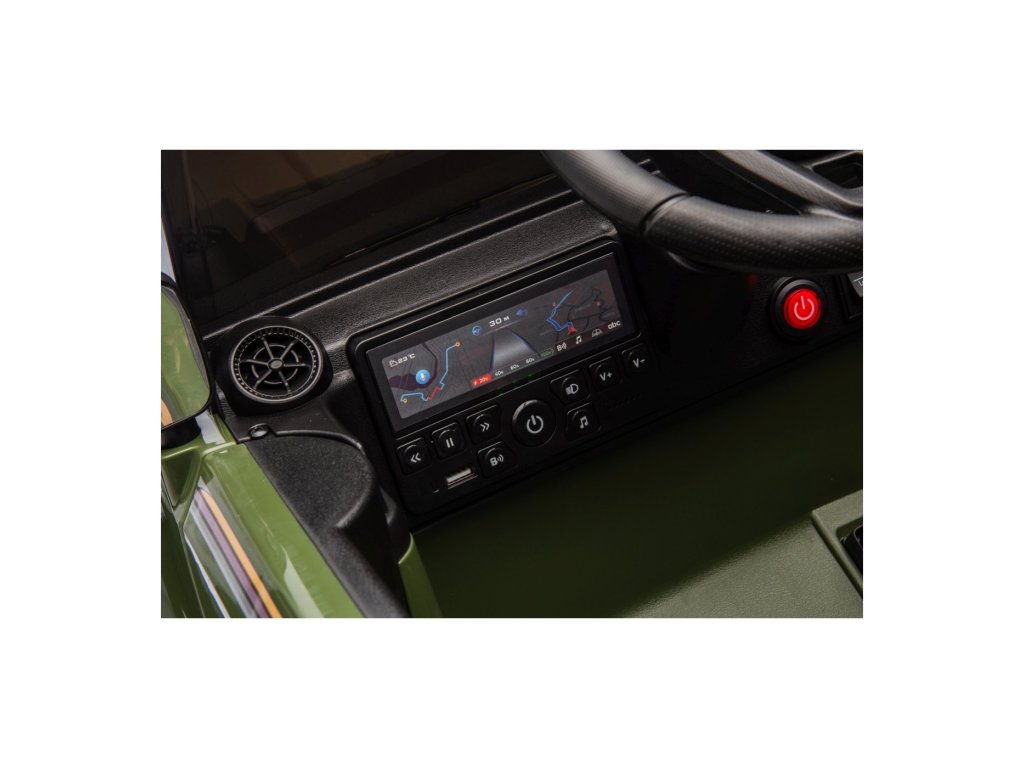 Детска акумулаторна кола Toyota Land Cruiser PRADO зелена пристига оборудвана с безшумни EVA пневматични гуми, осигуряващи комфортно возене без шум. Кола е снабдена с удобна еко-кожена седалка с 3-точкови предпазни колани.