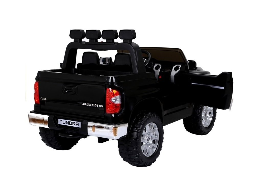 Акумулаторната кола Toyota Tundra черна е незаменима във всяко детско игрище. Колата се захранва от батерия с капацитет 12V 7Ah. Сред характеристиките ѝ са седалка, облечена в еко кожа, пенирани EVA гуми и LED осветление отпред и отзад. Максималното натоварване на превозното средство е 50 кг. По време на каране детето ще се забавлява с музикалния панел, който има входове за USB, MP3 и Micro SD.
