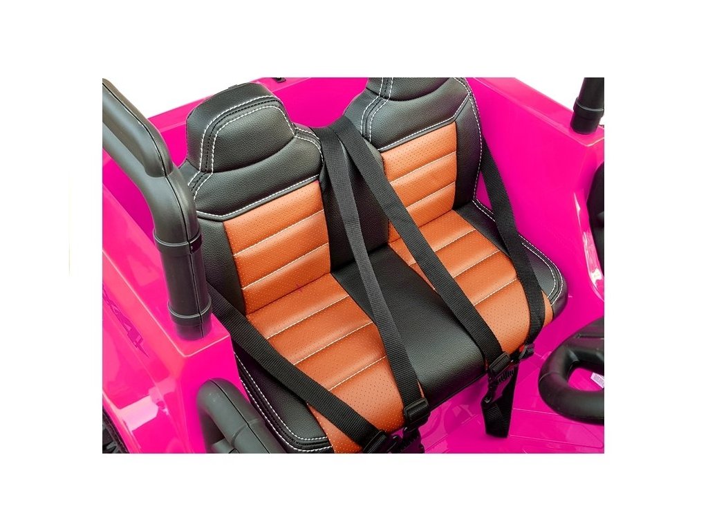 Акумулаторна кола WXE-1688 STRONG 4x4 24V розово е задължителна за всяко детско паркомясто. Колата се захранва от батерия с капацитет 24V 7Ah. Максималното допустимо тегло е 40 кг. По време на каране детето със сигурност ще се забавлява с музикалния панел, оборудван с входове за USB, MP3 и Micro SD.