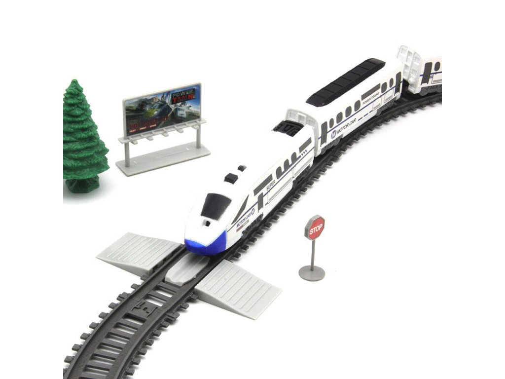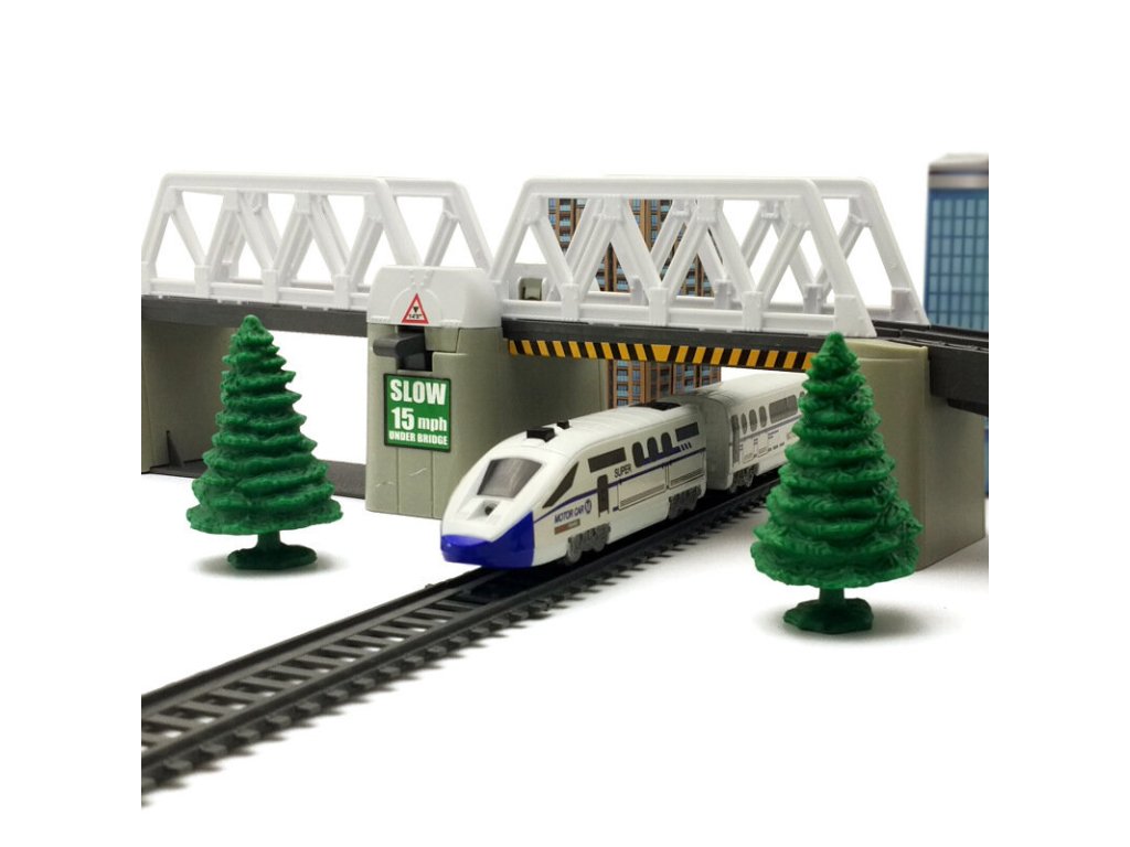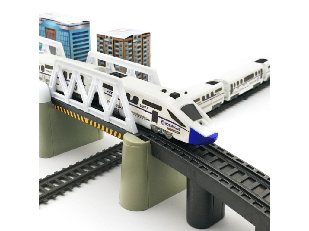 Реалистичните елементи като мост и пътни знаци добавят интерактивност и учат децата на основните правила за безопасност. Тази влакче писта не само забавлява, но и развива фината моторика, креативността и логическото мислене, което я прави идеален избор за малки любители на влакове.