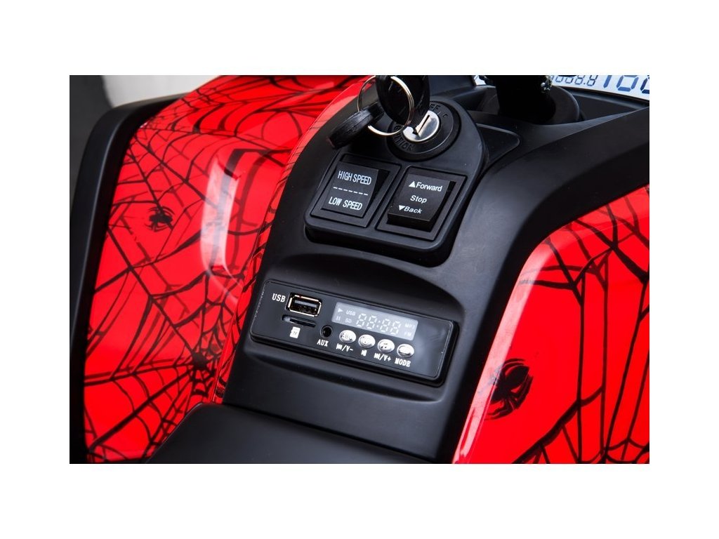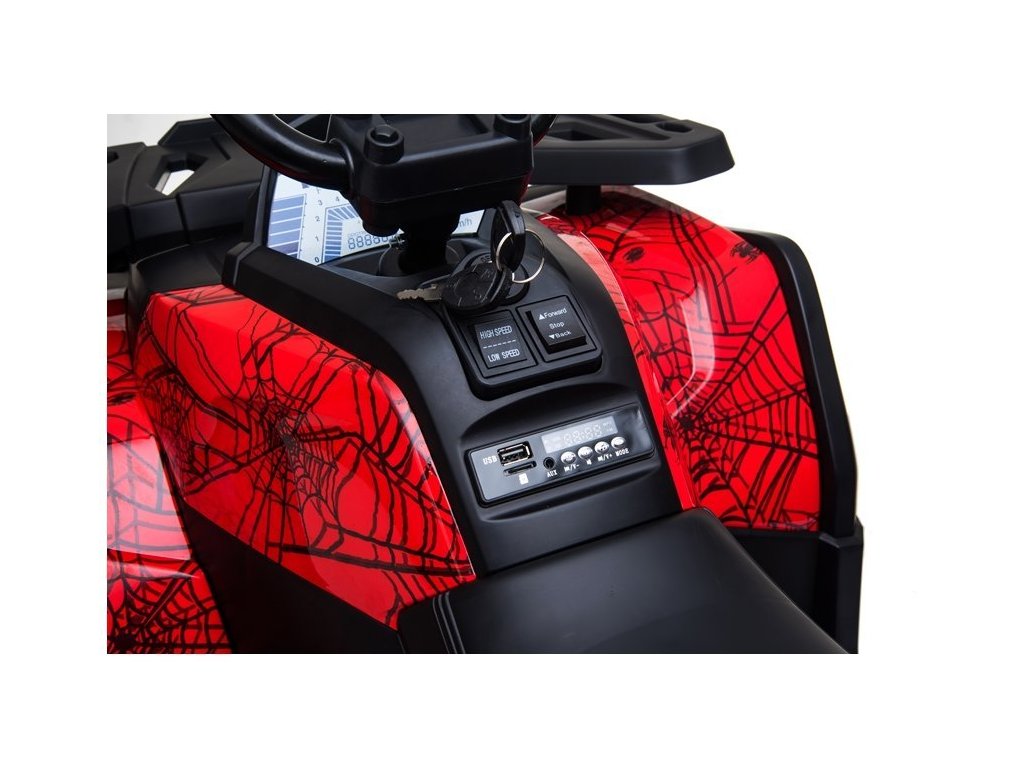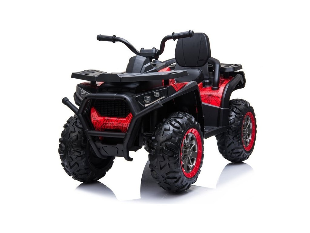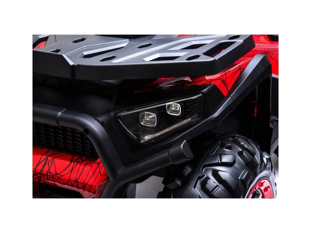Детско електрическо АТВ с 4 мощни мотора, батерия 12V 10Ah и богато оборудване. Детето се настанява на удобна седалка от еко кожа, а пътуването става по-приятно с музика, която може да пуснете чрез USB, SD или MP3 вход. За офроуд приключения атв-то развива скорост между 3 и 8 км/ч и има товароносимост до 50 кг. АТВ-то разполага с един педал за газ, а при отпускане на педала спира автоматично.