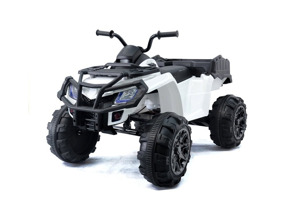 Акумулаторно атв бяло BDM0909 е детско електрическо четириколесно превозно средство, което е отличен начин да въведете децата в света на моторните превозни средства. Електрическите четириколки предлагат много забавление както при семейни разходки, така и при игра в градината. Детето развива уменията си за управление и моториката си чрез каране. Четириколката се движи напред и назад и разполага с опция за ускорение. Седалката е много удобна и ергономично оформена, така че детето с удоволствие ще сяда отново зад волана. За безопасността на детето се грижи функцията за автоматично спиране, която се активира при отпускане на педала за газ. Освен това четириколката разполага с LED осветление. Четириколката е сертифицирана с европейския стандарт за безопасност CE и е подходяща за деца над 3 години.