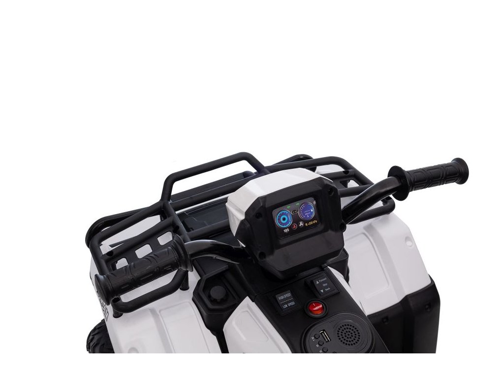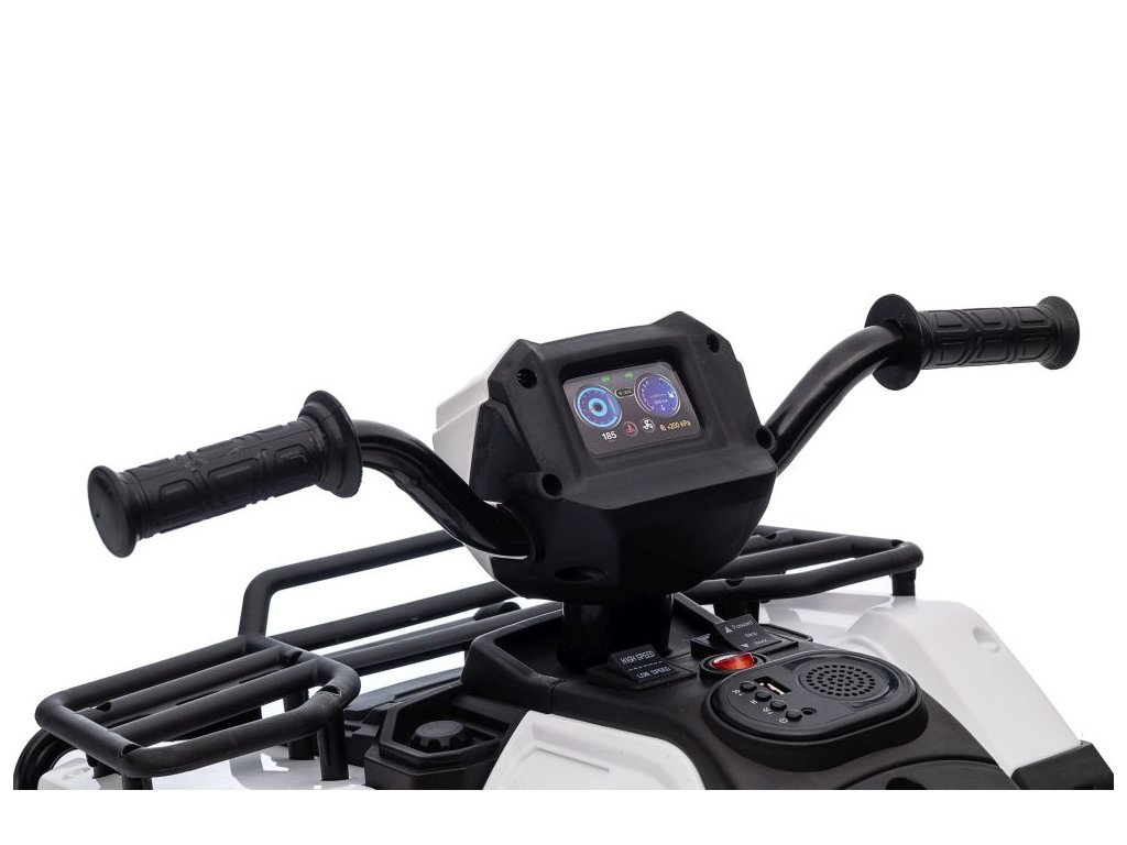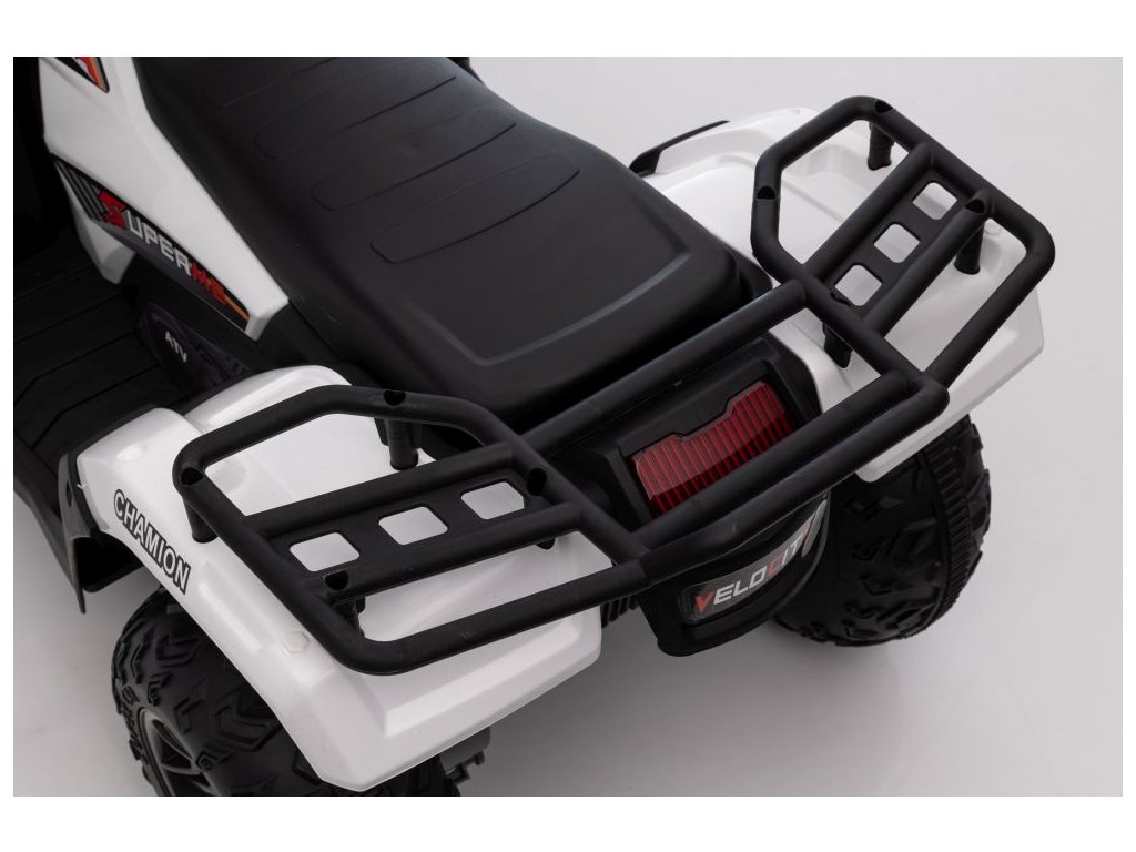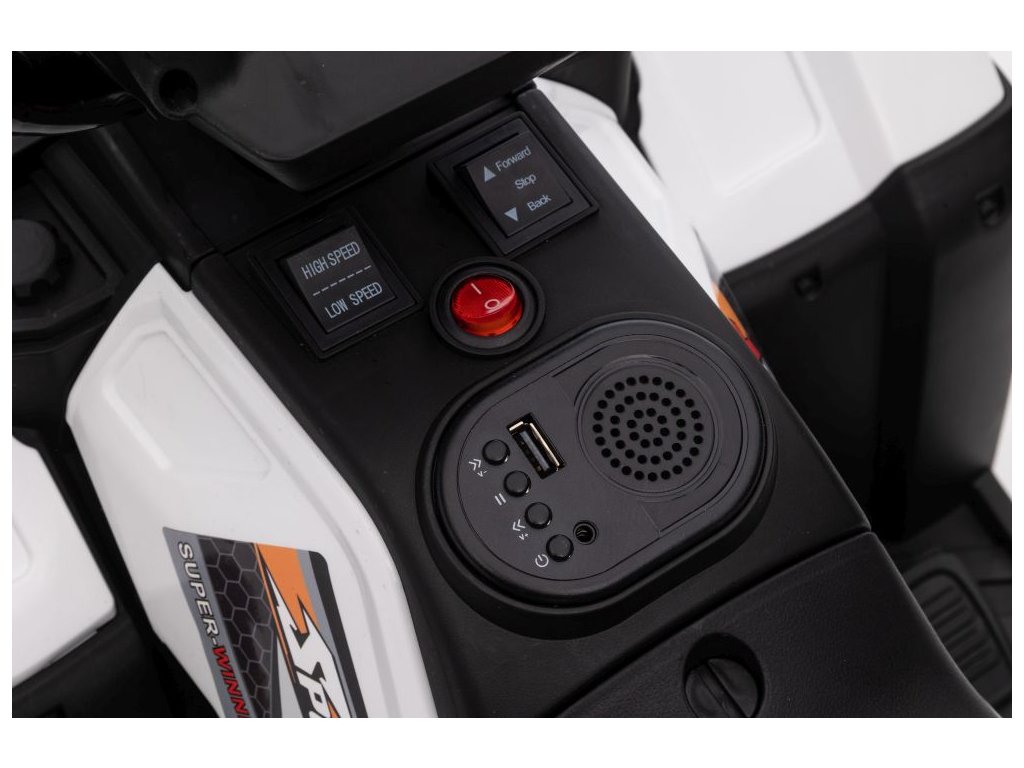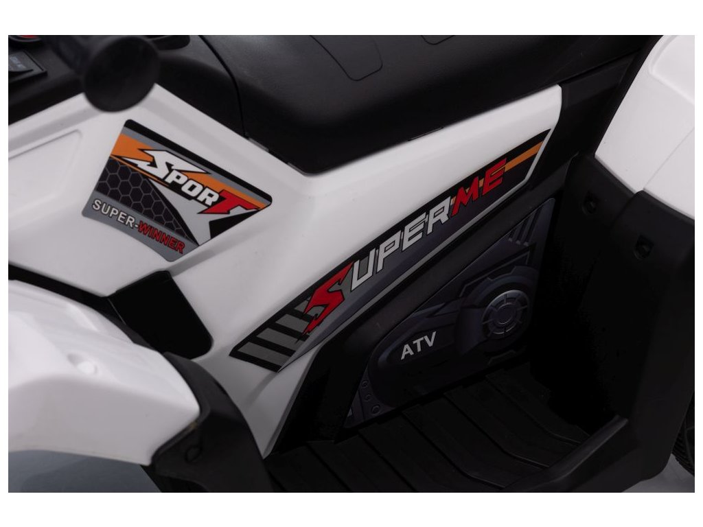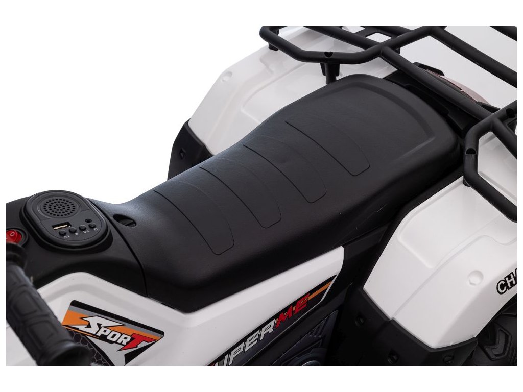 Сред оборудването е музикален панел с входове за USB и MP3. АТВ Superme бяло разполага с предни LED светлини, позволява движение във всички посоки, а максималното му натоварване е до 25 кг.