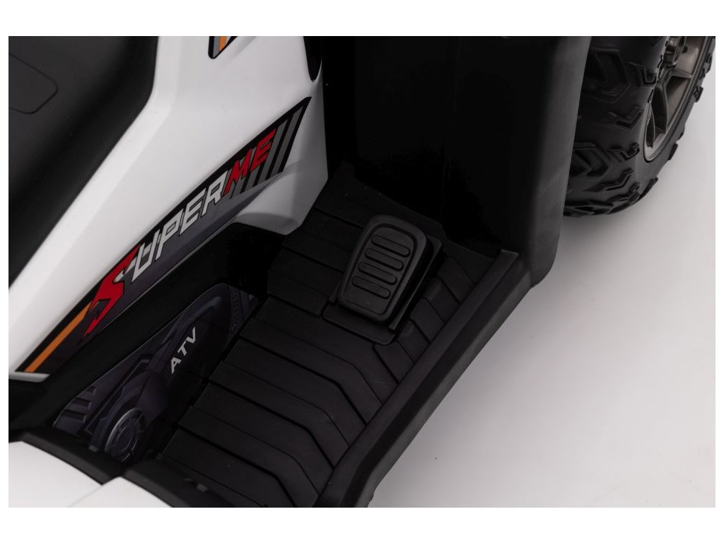 Детско електрическо АТВ Superme бяло е оборудвано с два мотора с обща мощност 90W. АТВ-то лесно се справя с различни терени, включително неравни повърхности и наклони.