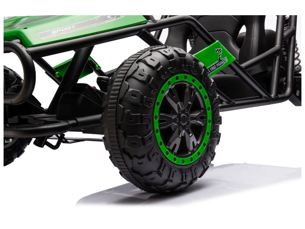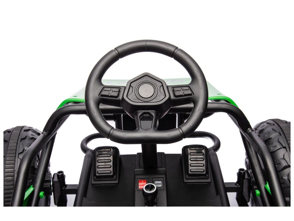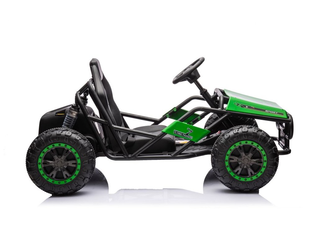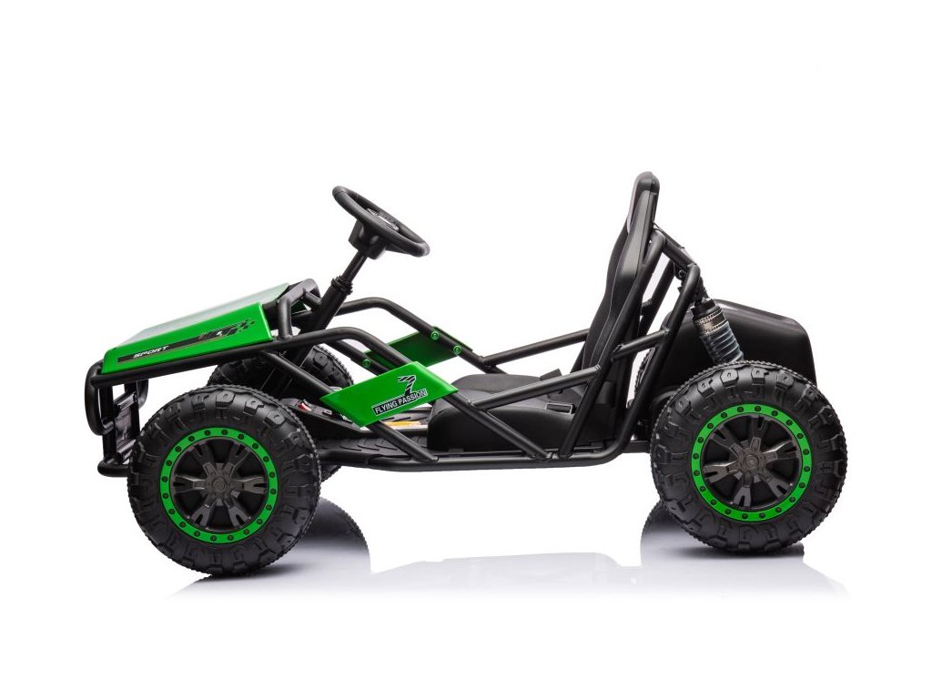 Електрическо бъги Buggy A8812 24V зелено не трябва да липсва във всяко детско игрално пространство. Бъгито се захранва с батерия с капацитет 24V 14Ah. Максималното натоварване на возилото е 60 кг.
