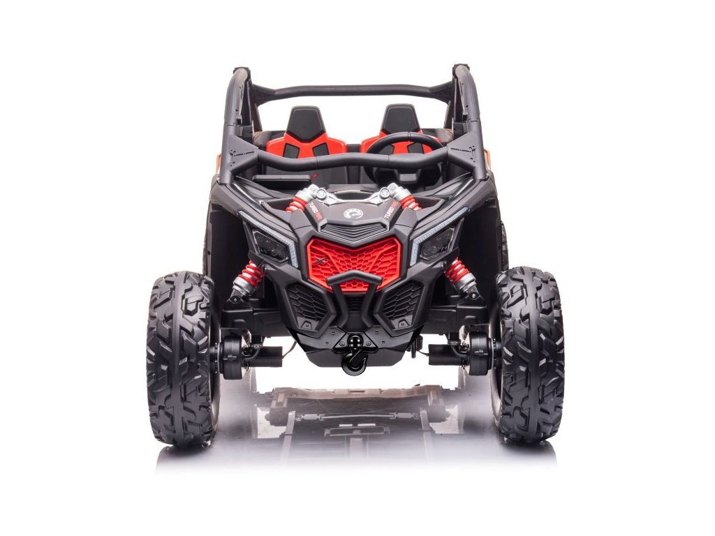 Електрическо бъги Buggy Can-Am 2x240W 2x24V червено с два мощни мотора с обща мощност 480W е незаменимо за всяко детско игрово пространство. Бъгито се захранва от две батерии с капацитет 24V 7Ah. Максималното натоварване на возилото е 50 кг. По време на каране детето ще се забавлява с музикалния панел, който включва MP3, Bluetooth, USB и радио.