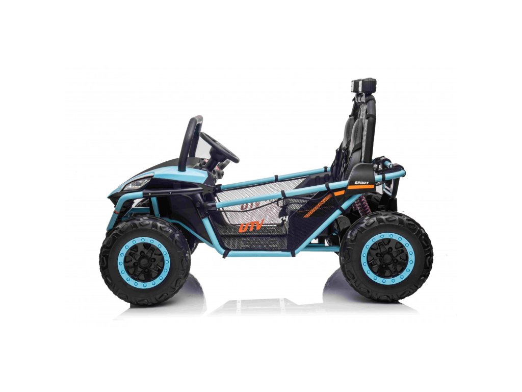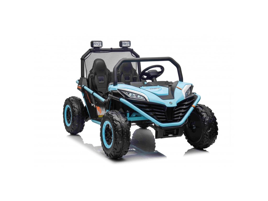 Акумулаторното бъги Buggy FASTER 24V синьо с мощни мотори с обща мощност от 300W е незаменимо превозно средство във всяко детско пространство. Бъгито е захранвано от акумулатор с капацитет 24V 10Ah. Максималното товароносимост на возилото е 59 кг. По време на каране, детето ще се забавлява със звуковия панел, който включва MP3, Bluetooth, USB, AUX и радио.
