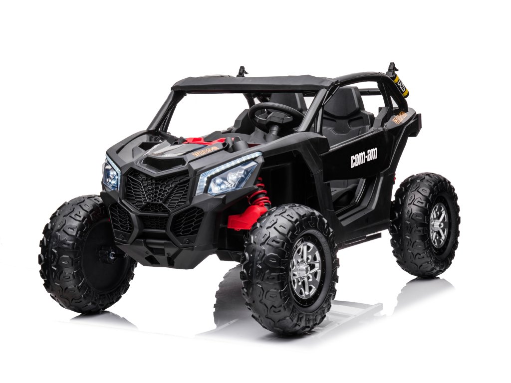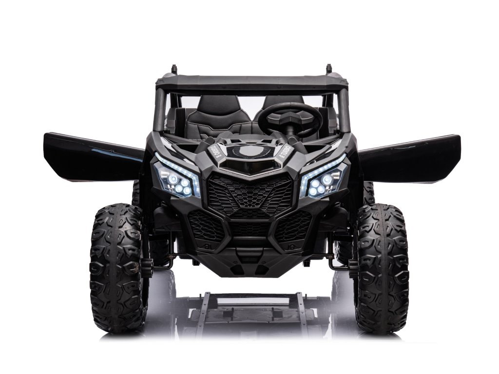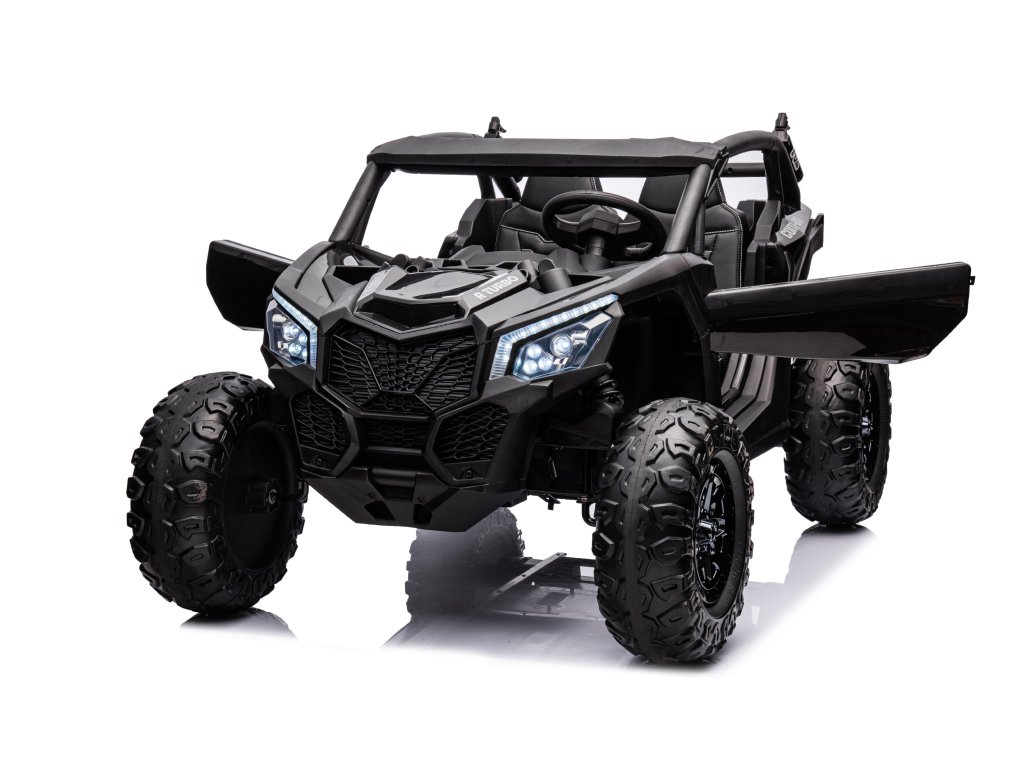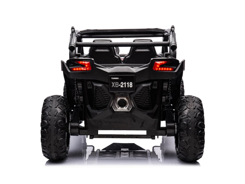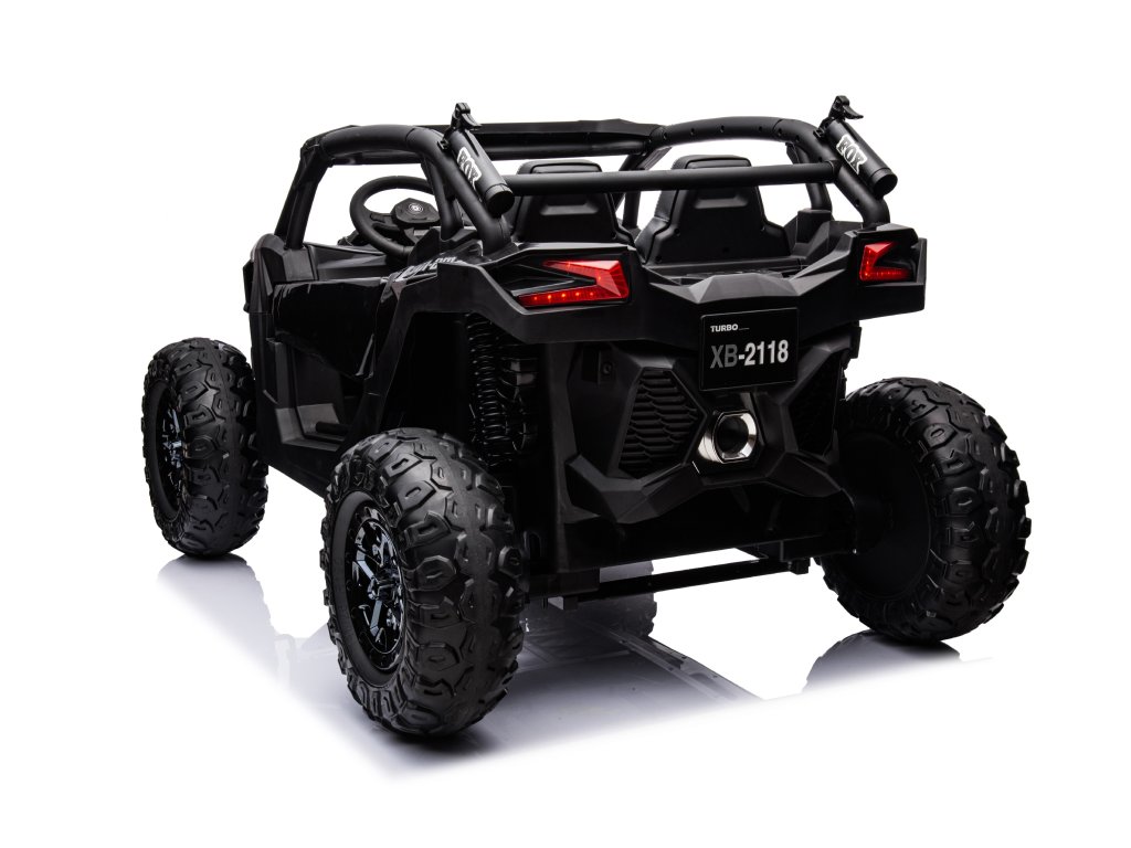 Акумулаторно бъги Buggy Turbo 24V 4x200W черно с четири мощни мотора с обща мощност 800 W е перфектният избор за всяка детска градина. Бъгито се захранва от акумулатор с капацитет 24V 7Ah. Максимално допустимо натоварване – 60 кг. При стартиране ще чуете реалистични звуци на мотор, а по време на каране детето ще бъде заинтригувано от музикалния панел с радио, MP3, предварително записани мелодии, като към панела е възможно да се свърже и чрез Bluetooth.