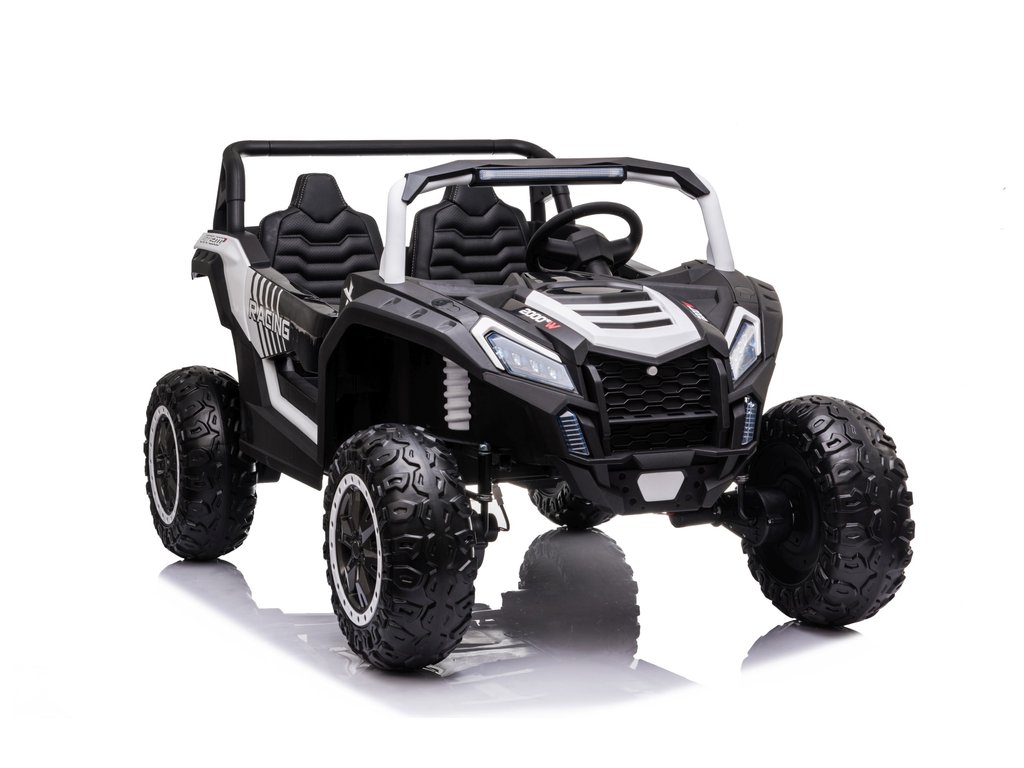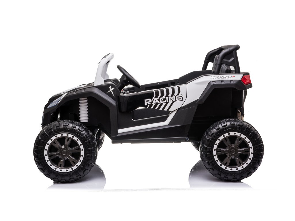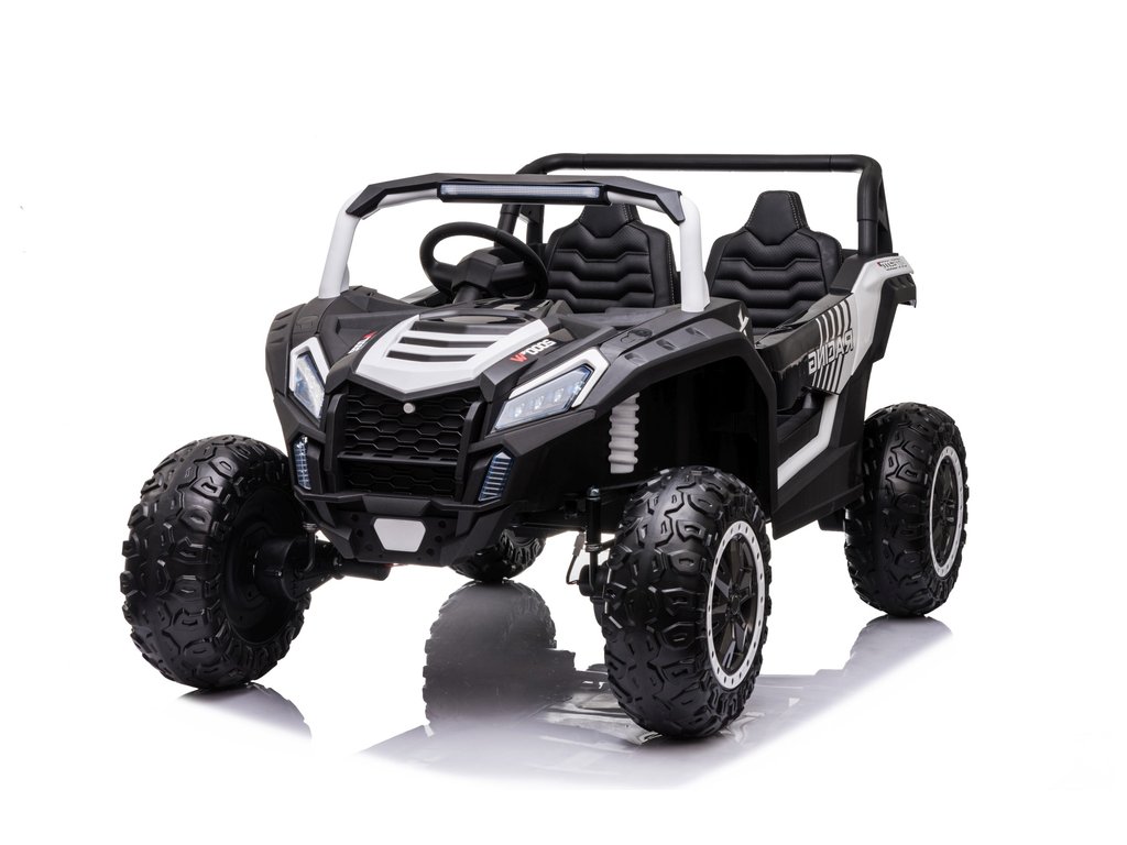 Детско електрическо бъги Buggy UTV с четири мощни електрически мотора 200W всеки. Кола лесно преодолява всякакъв терен. В седалката могат удобно да се настанят дори две деца, тъй като бъгито поддържа товароносимост до 60 кг.