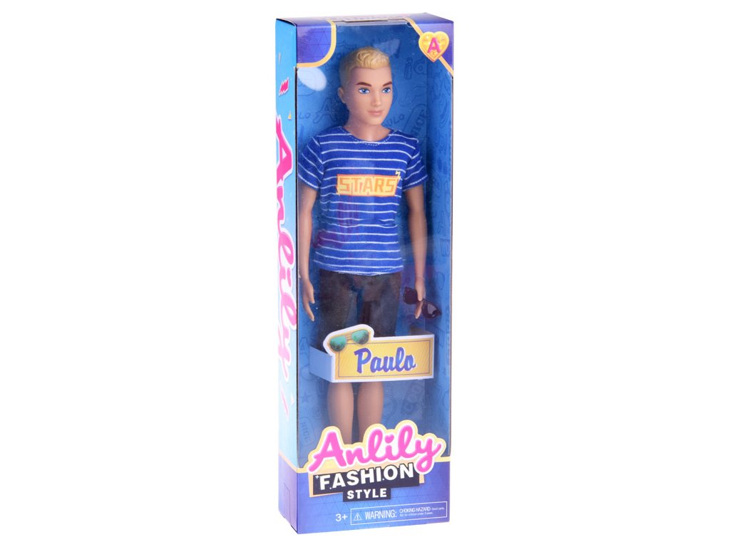 Anlily Стилен човек в модерна тениска с райета и къси панталони е перфектният партньор за всяка игра с кукли. Симпатичен, висок, с руса коса, облечен в модна тъмносиня тениска с бели райета, черни къси панталони и бели мокасини. На носа си има черни слънчеви очила. Спортната кукла има подвижни крайници, което я прави още по-забавна за игра.