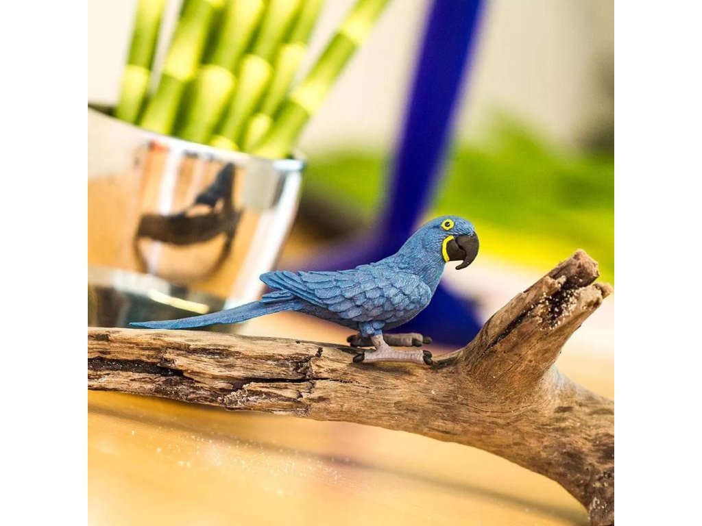 Моделът изобразява хиацинтов ара, много интелигентен папагал, известен със способността си да използва естествени инструменти. Текстът по-нататък обобщава основна информация за вида и данни за самия модел.