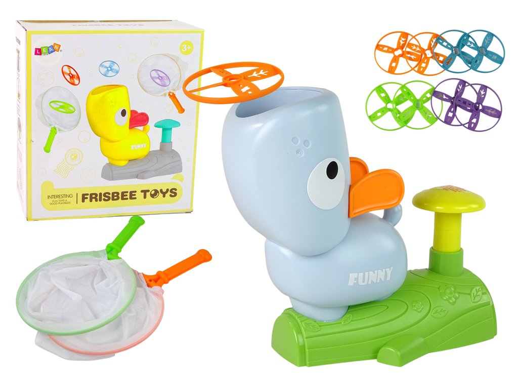 Играчката е предназначена за двама играчи. Устройството под формата на пате служи като катапулт за дискове. Поставете диска на указаното място – върху главата на патето. Натиснете бутона и дискът излита нагоре. Целта е да уцелите въртящия се диск в мрежата. Правилата можете да определите сами.