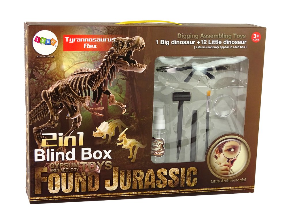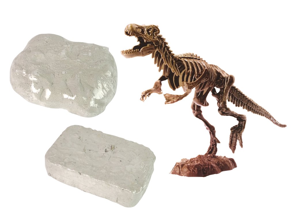 Инструментите в комплекта позволяват да откриете скелета на голям динозавър и два по-малки. Два гипсови камъка и двойно повече забавление. Двата по-малки скелета са обвити в мистерия. След почистване на костите с предоставените пособия, ще разберете какъв динозавър се крие вътре в камъка.