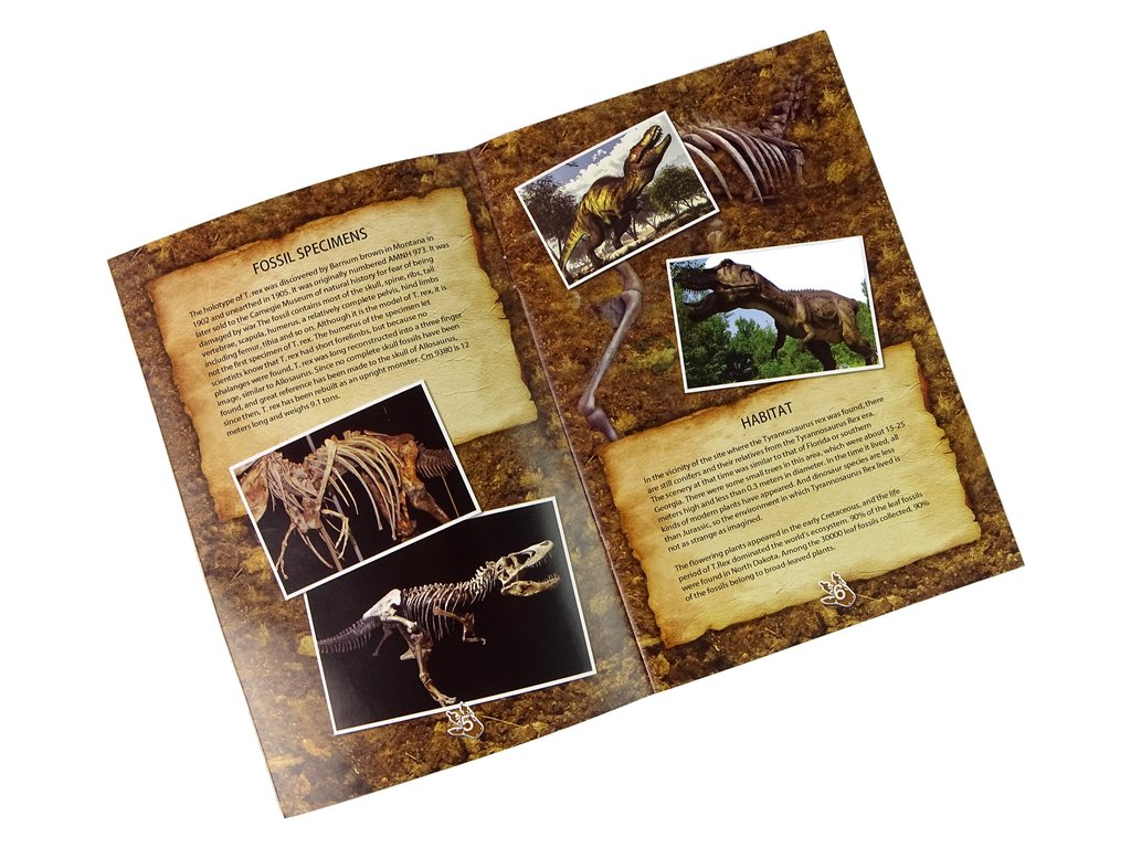 Изненадата се крие вътре в фосила, където са скрити разкопки, като например фрагменти от динозавърския скелет. И това не е всичко! Включен е и научен наръчник за динозаврите на английски език, който обогатява знанията на малките изследователи.