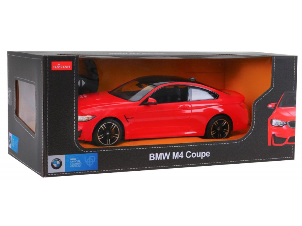 Автомобил с дистанционно управление R/C BMW M4 Coupe Rastar червен е лицензиран продукт на компанията Rastar. Автомобилът е изработен в мащаб 1:14. Дистанционното управление работи на честоти 27/40 MHz. С помощта на дистанционното може да управляваме движението на количката във всички посоки – напред, назад, наляво и надясно.