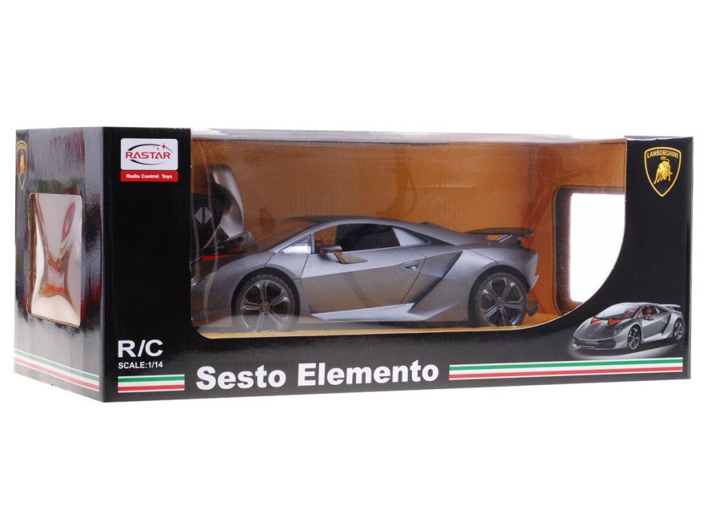 Автомобил с дистанционно управление R/C Lamborghini Sesto Elemnto Rastar 1:14 е лицензиран продукт на компанията Rastar. Мащабът на автомобила е 1:14. Дистанционното управление работи на честоти 27/40 MHz. С помощта на дистанционното можем да управляваме движението на автомобила във всички посоки – напред, назад, наляво и надясно.