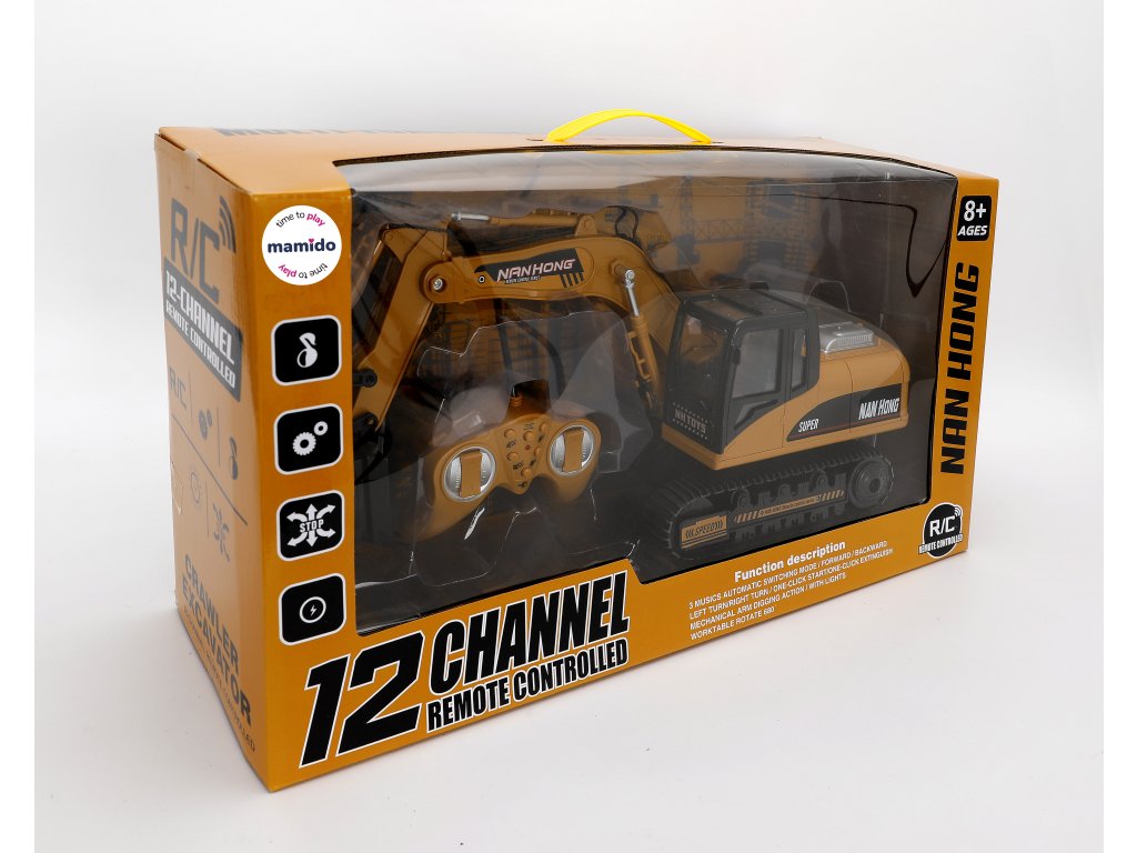 Багер с дистанционно управление, което добавя допълнителен ефект – спрей, симулиращ дим при работа. Рамото се движи нагоре и надолу, багерът се движи напред и назад и може да завива в двете посоки. Светлинните ефекти повишават реализма по време на игра, така че багерът изглежда като истинска строителна машина.