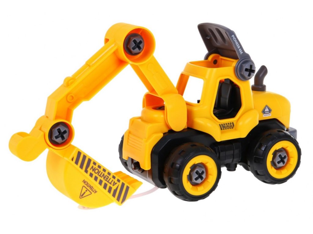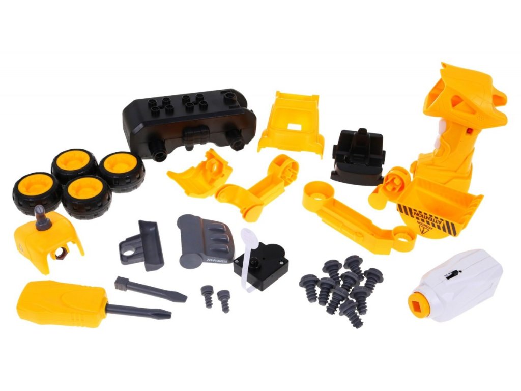 Творчески конструктор, състоящ се от 28 части. Сглобете багера с помощта на батерийна бормашина или ръчна отвертка – включени в комплекта. След като поставите елемента от бормашината в багера, той може да се движи.