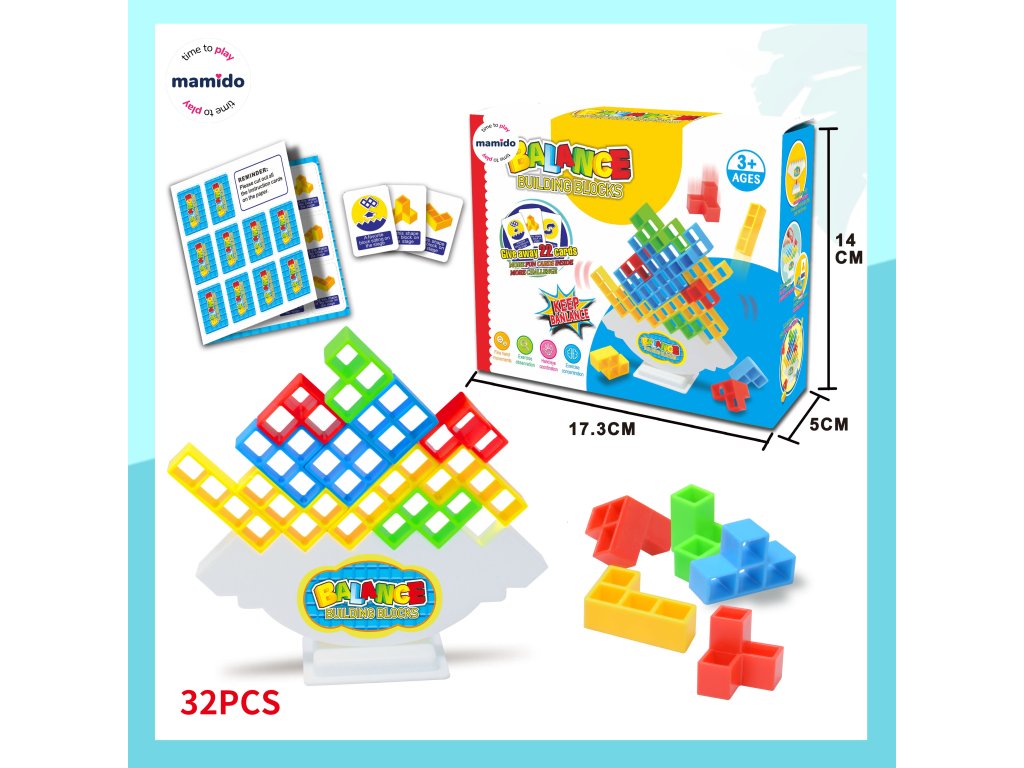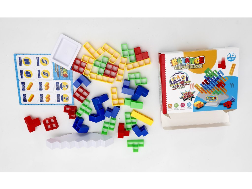 Цветният балансиращ конструктор Балансиращи строителни блокчета е вълнуваща игра, която ще тества търпението, уменията и чувството за баланс. Децата строят различни по форма елементи върху специална основа, която непрекъснато се клати – и задачата е кулата да не падне.