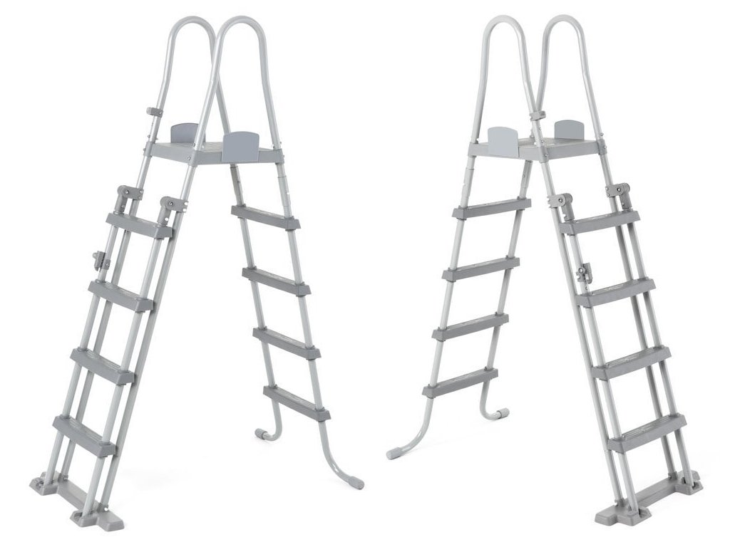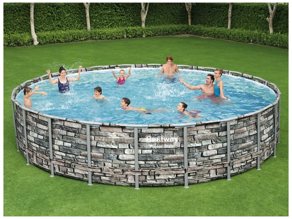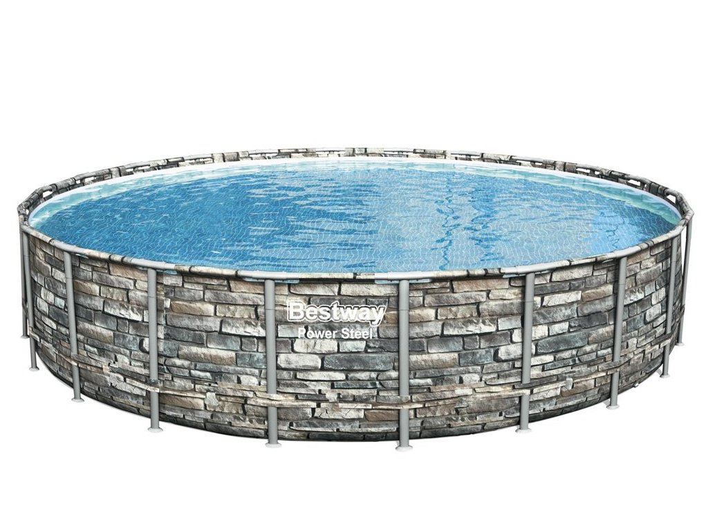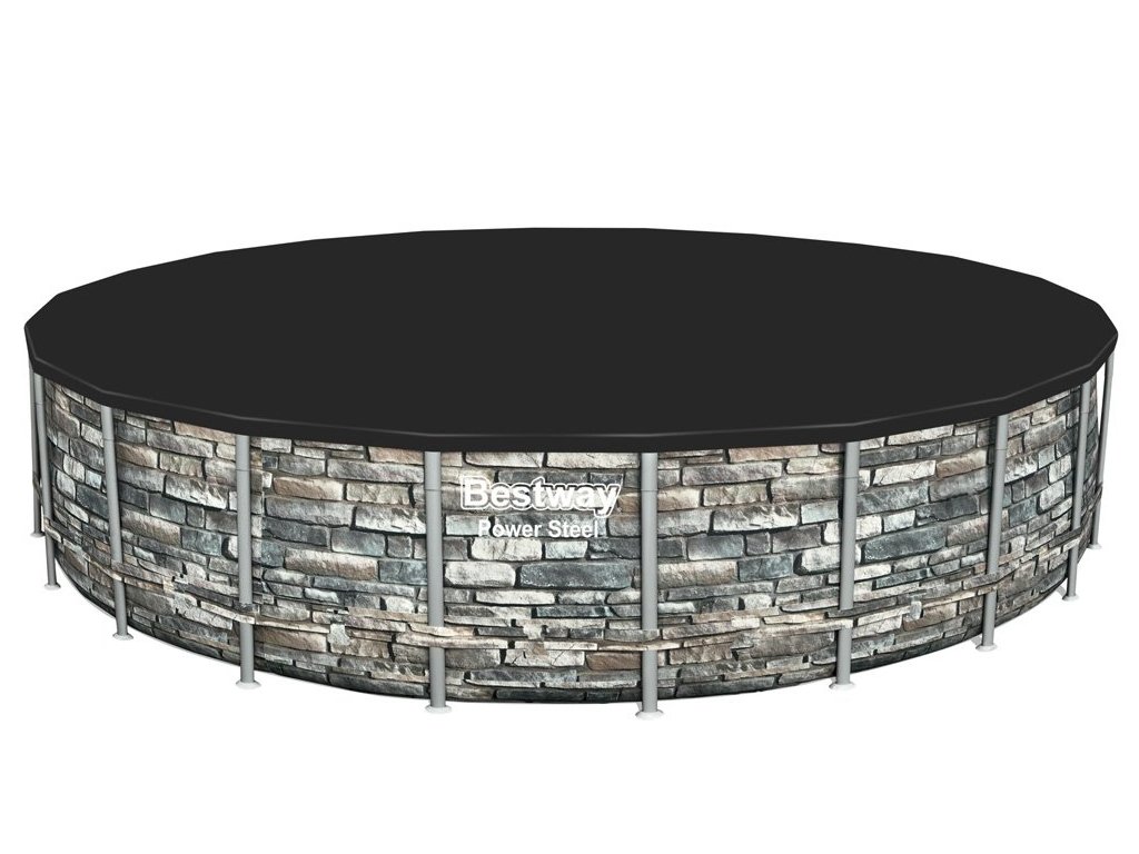 Басейн Bestway Power Steel 671x132 см се предлага с филтърна помпа, покривало и безопасна стълба. Стълбата е повдигната, за да предпази децата от достъп до басейна без надзор, стъпалата са покрити с нехлъзгащ се материал, а ръкохватките са удобни и стабилни.