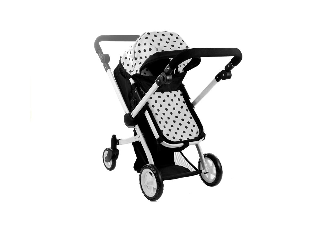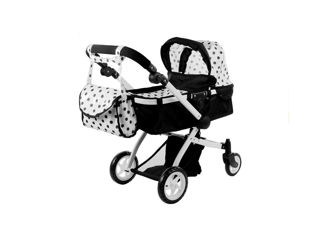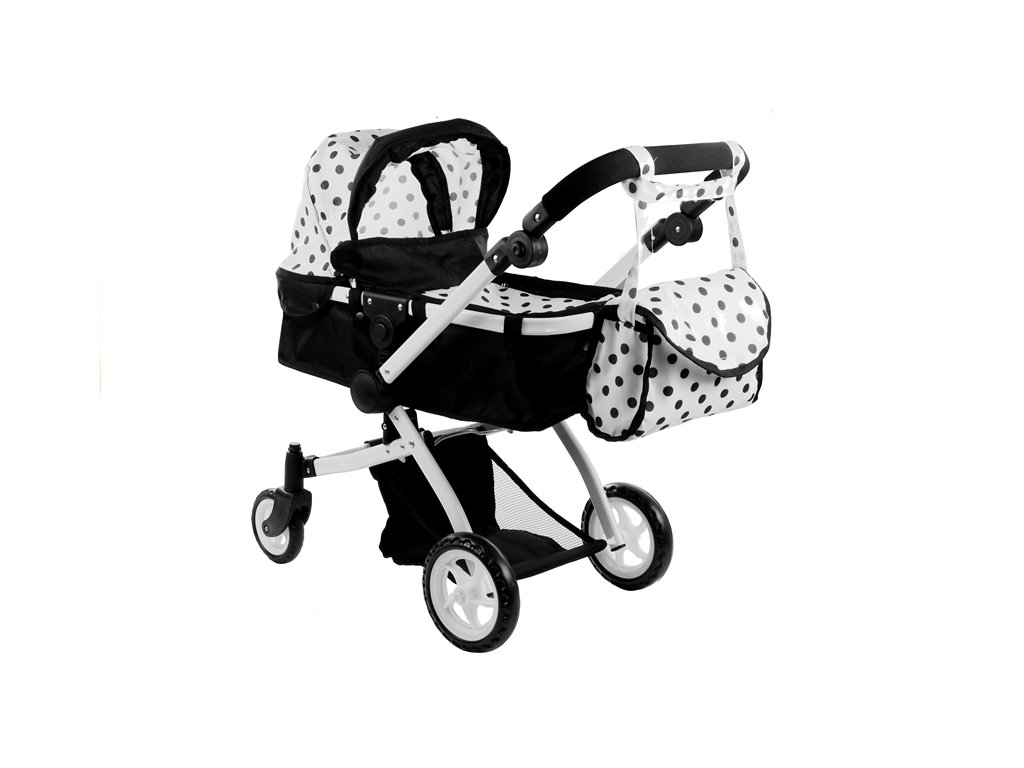 Бебешка количка за кукли подходяща за деца над 3 години. Модел 2в1 разполага с предни колела, въртящи се на 360 градуса, като благодарение на комбинираните гумирани и пянисти колела, децата могат да играят у дома без притеснения от надраскване на пода. В комплекта е включена чанта за дребни предмети, в която момичето ще може да носи различни аксесоари и да се чувства като истинска майка. Количката е изработена от сертифицирани материали с високо качество, което гарантира надеждност и дълготрайност на играчката. Вози́лото разполага с сертификат CE.