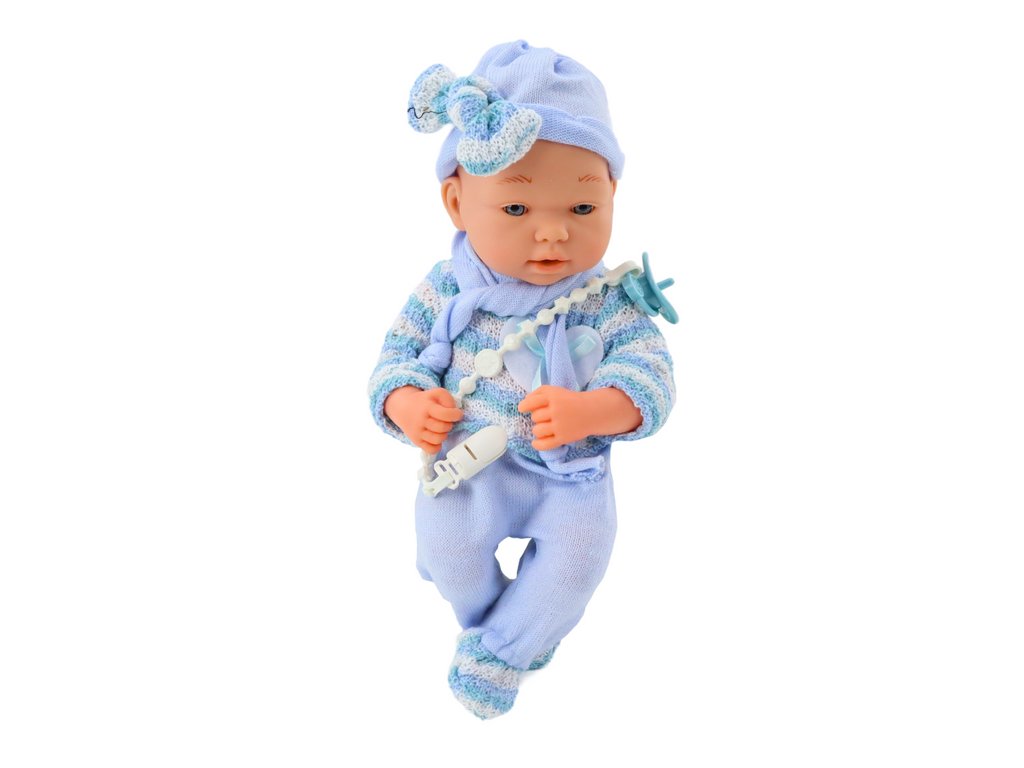 Бебешка кукла с райет пуловер в синьо е перфектният спътник за всяко малко момиченце, което обича да се грижи. С очарователен пуловер и шапка, подвижни ръце и крачета, които могат лесно да се поставят в различни пози, тя внася реализъм и интерактивност в игрите.