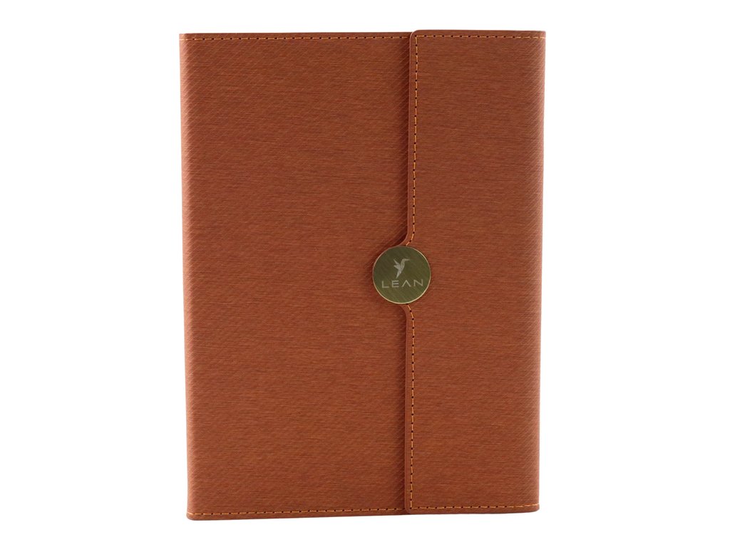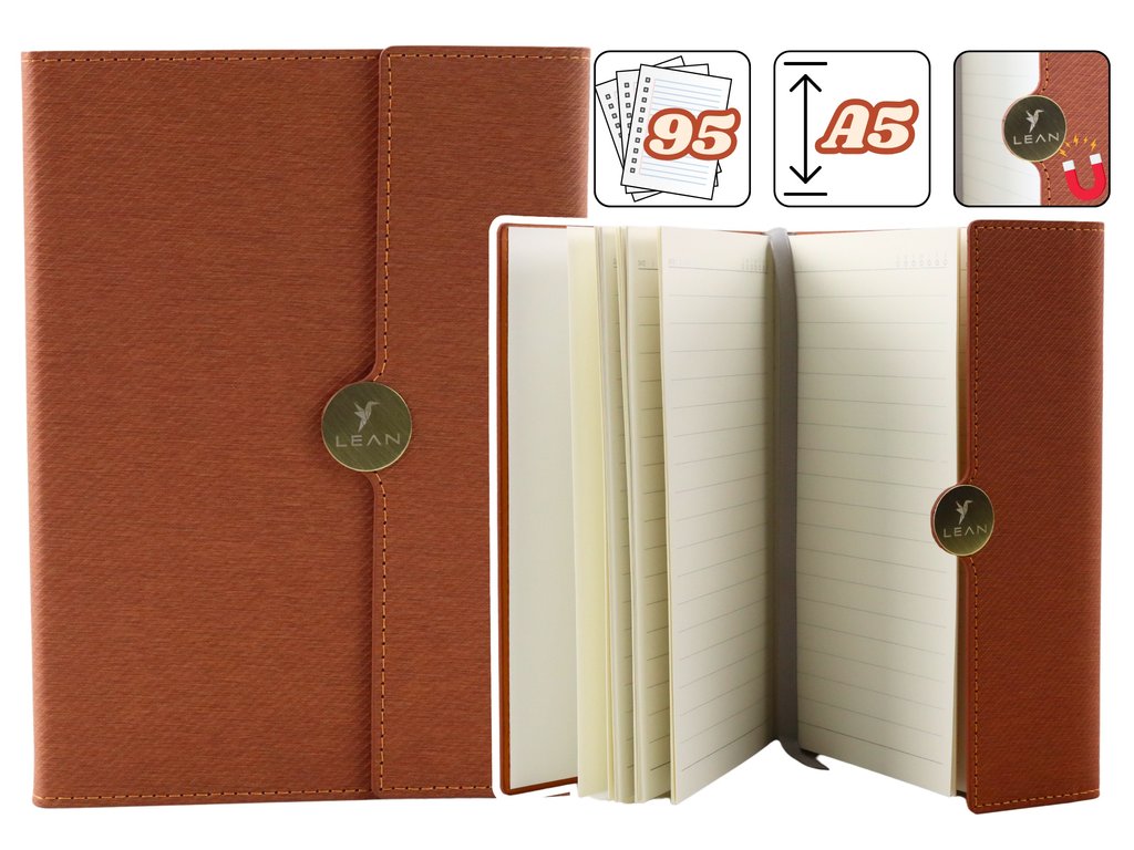 Елегантен офис бележник формат А5 с магнитно закопчаване и кафяво покритие, който съчетава стил и функционалност. Здравото му магнитно закопчаване предпазва съдържанието от нежелано отваряне и замърсяване, а висококачественото твърдо покритие гарантира дълготрайна употреба.