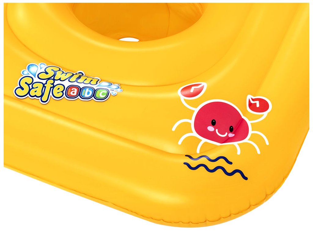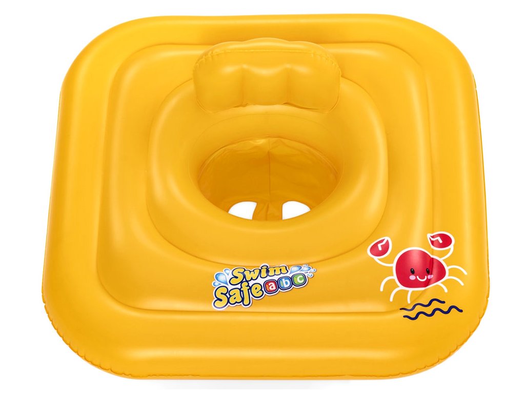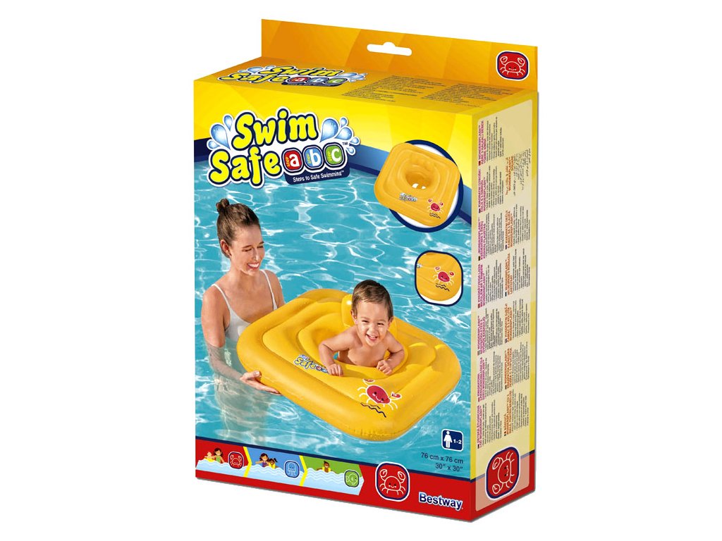 Bestway надуваем стол плаващ пръстен 76 см от серията Swim Safe за деца. Плаващият стол с размери 76 x 76 см е предназначен за деца на възраст от 1 до 2 години. Надуваемият стол е незаменимо помощно средство за детето, което започва своето запознаване с плуването. Благодарение на специално проектираното седалко във формата на пелена, малкото дете може да се движи стабилно и безопасно във водата.