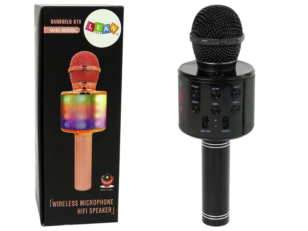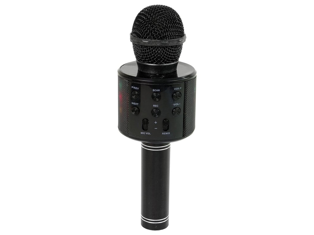 Безжичен караоке микрофон WS-858 черен предлага часове забавление, изпълнени с пеене и танци за всички малки артисти. Благодарение на лесната връзка чрез Bluetooth с телефона, децата могат да изпълняват любимите си песни директно на домашната сцена.