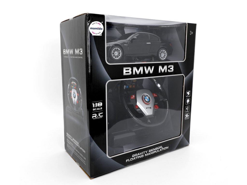 Моделът BMW M3 е детайлно изработен – лъскава каросерия, спортни джанти, автентични пропорции. Основното предимство е контролерът тип волан, който позволява интуитивно управление чрез накланяне и завъртане. Благодарение на функцията гравитационен сензор е управлението плавно и наподобява истинско изживяване зад волана.