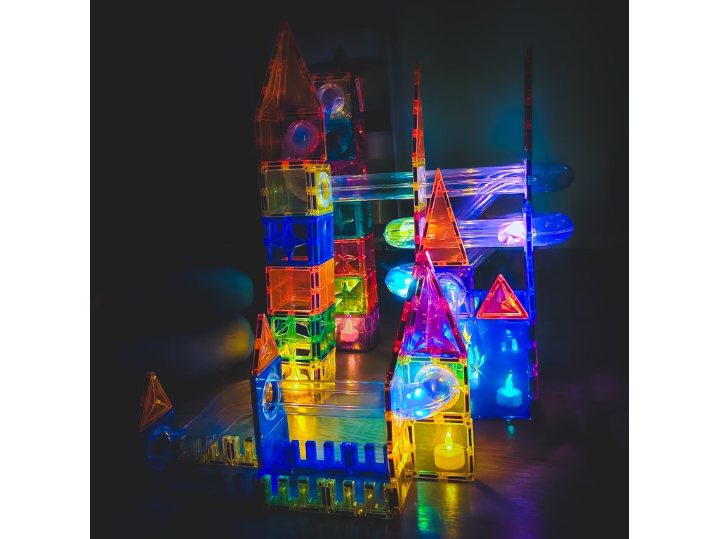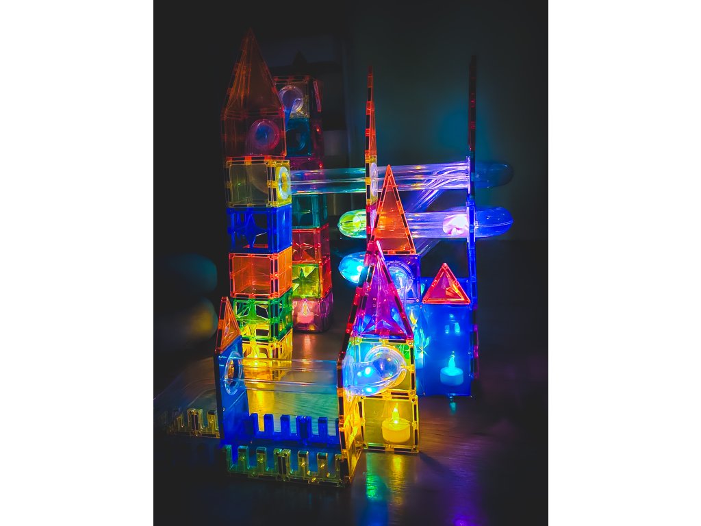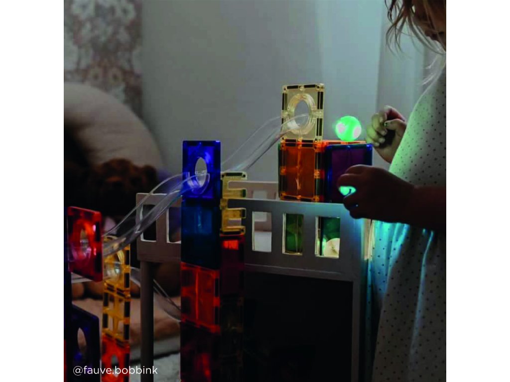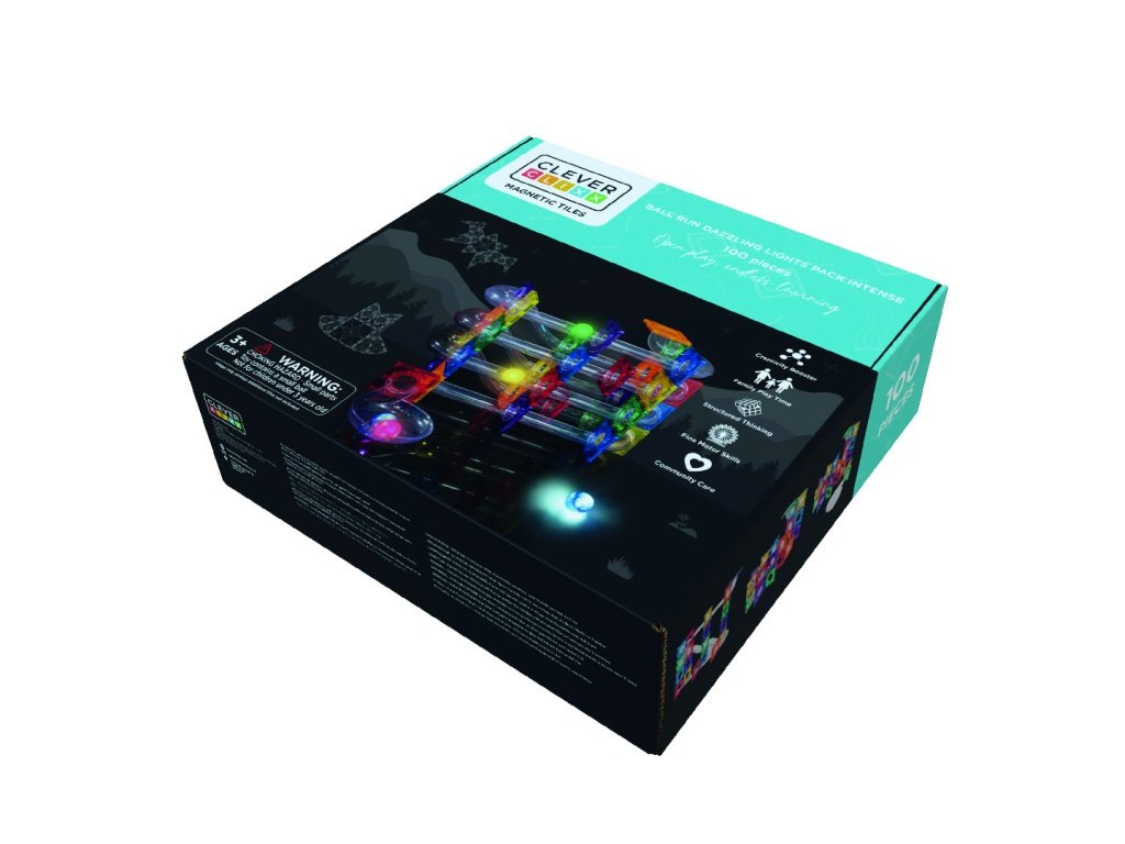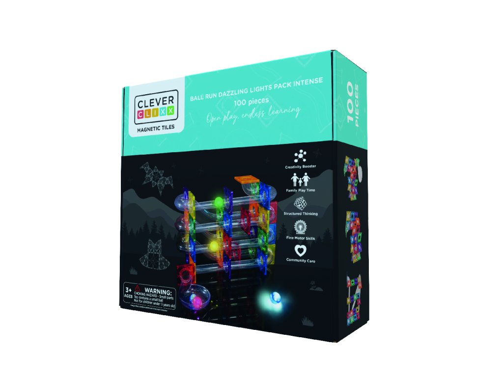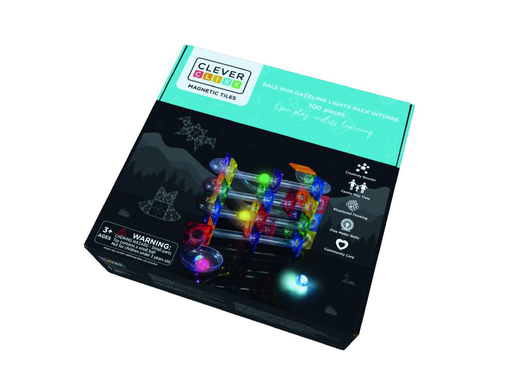 Открийте магията на светлинната игра с магнитния конструктор Cleverclixx! Този уникален комплект за писта с топчета съчетава популярната магнитна конструкция с LED ефект – специалните топчета светят при движение и създават впечатляващо светлинно шоу. Колкото по-бързо се търкалят, толкова по-силно светят. Когато спрат, автоматично се изключват – и приключението може да започне отново.