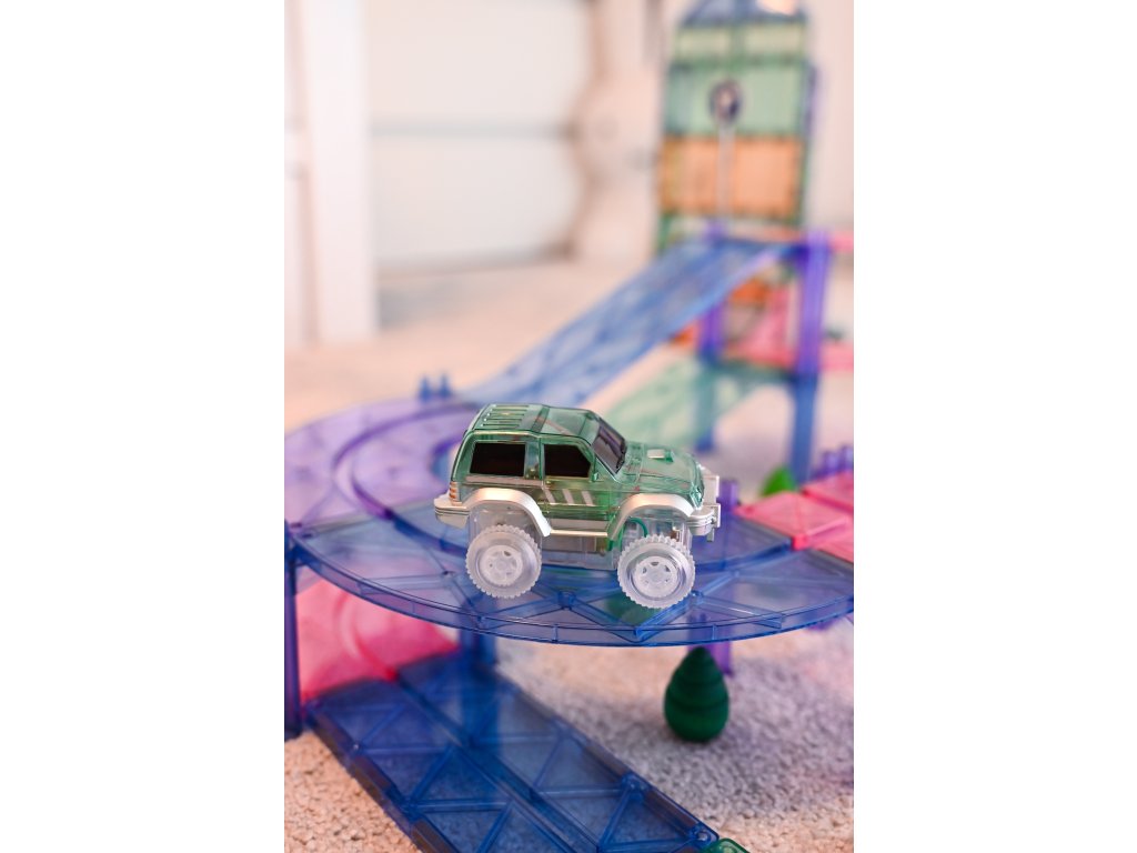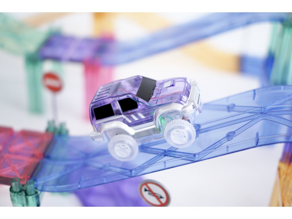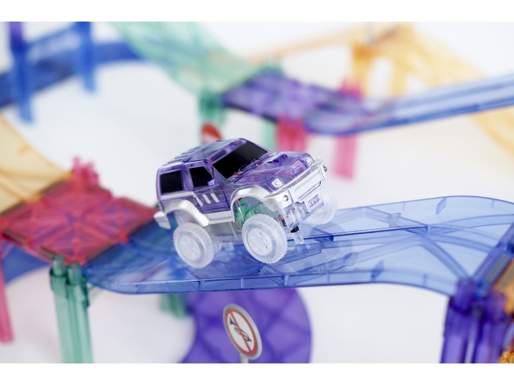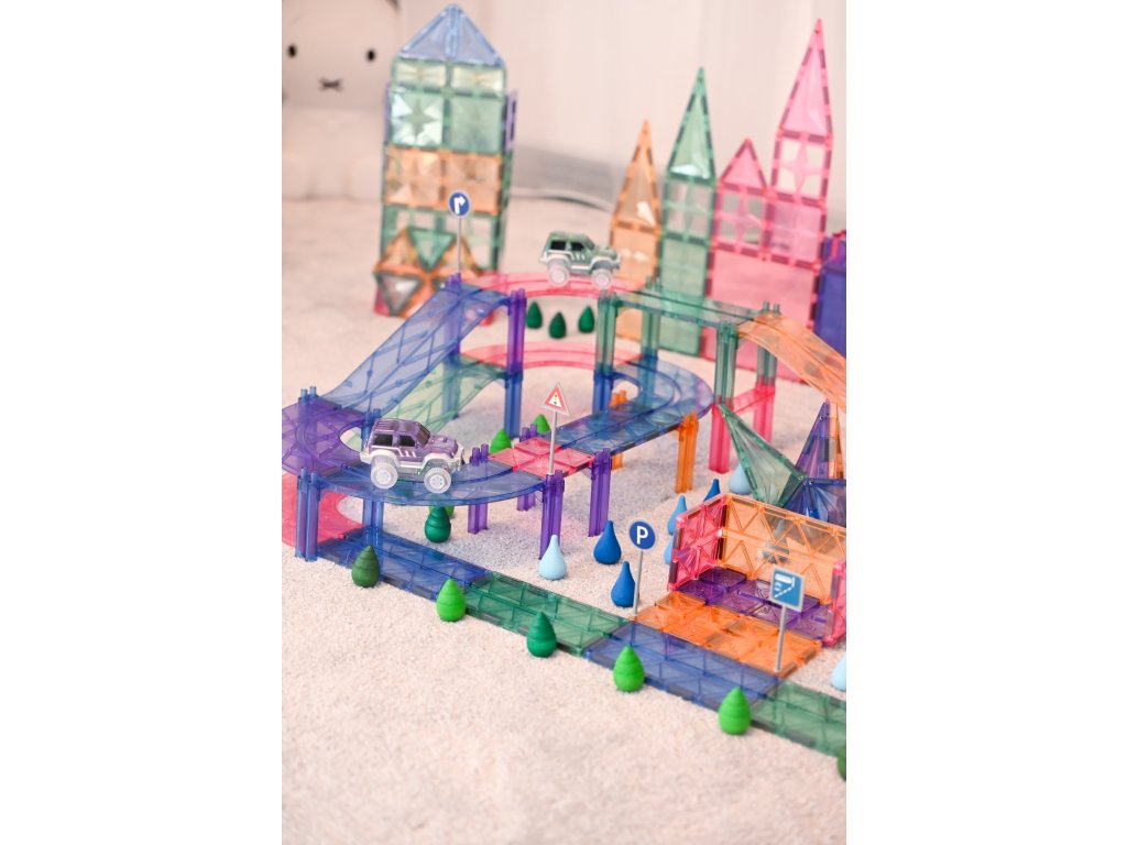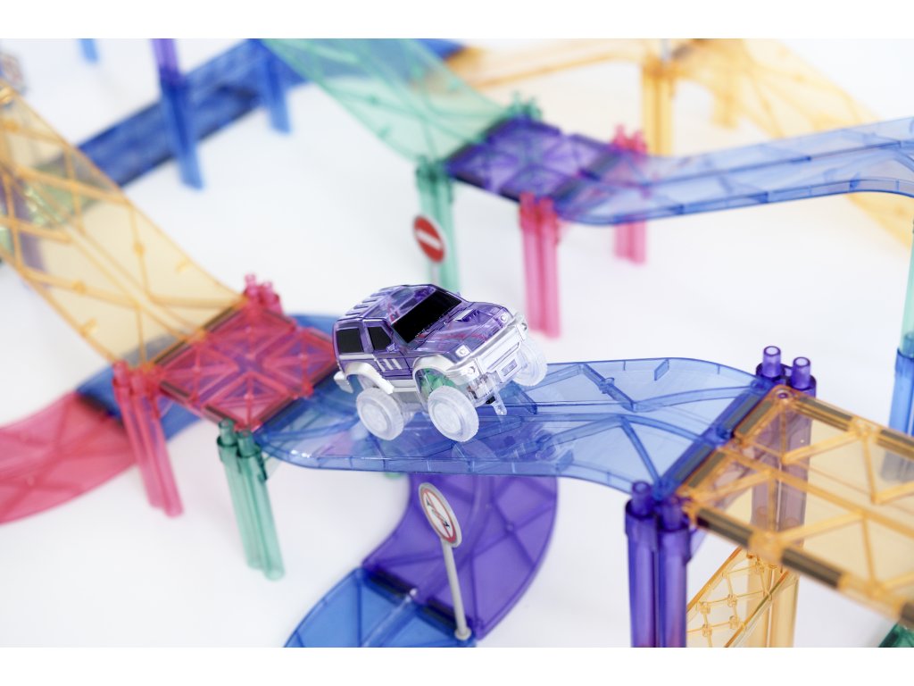 Потопете се в света на меките пастелни цветове и безкрайното забавление! Магнитната писта Cleverclixx в пастелна серия не само привлича с красив дизайн, но и предлага часове творческа игра. Децата могат да създават състезателни трасета, градски улици или завъртяни пътечки – всичко това лесно благодарение на магнитното свързване на детайлите.