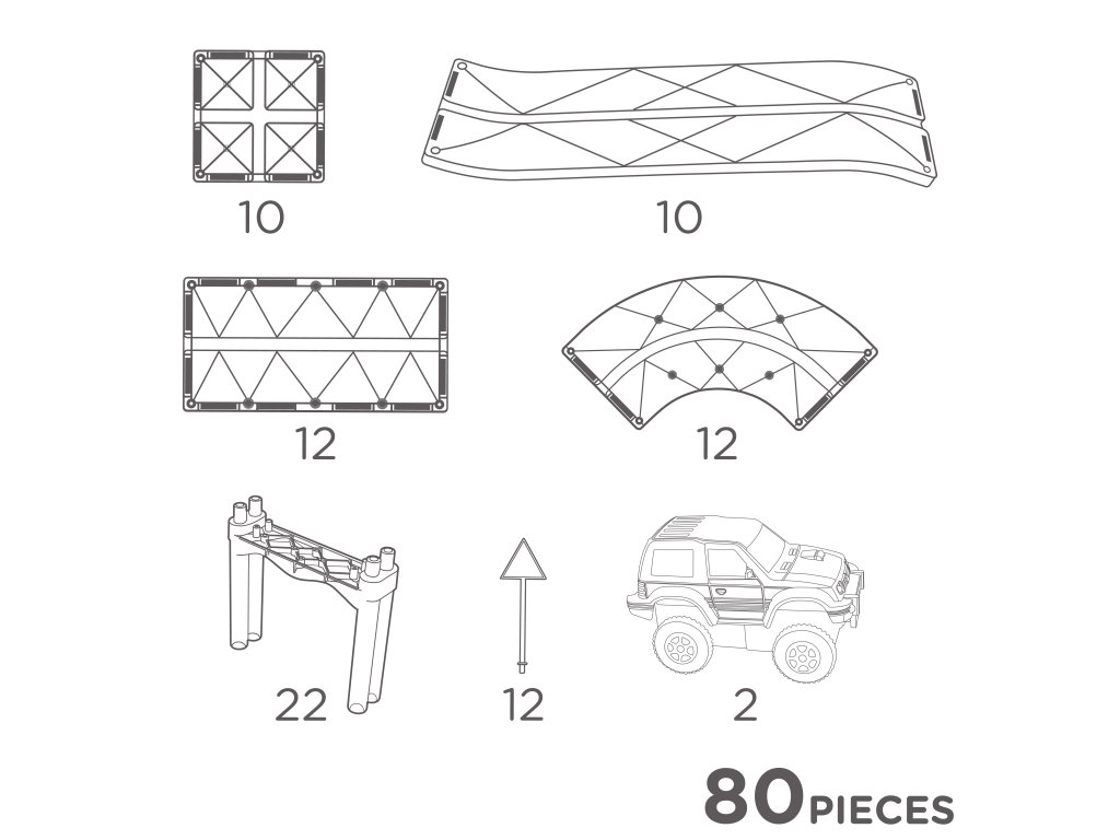 В комплекта са включени 2 колички, които се движат сами с помощта на батерии – просто сглобете пистата и приключението започва.